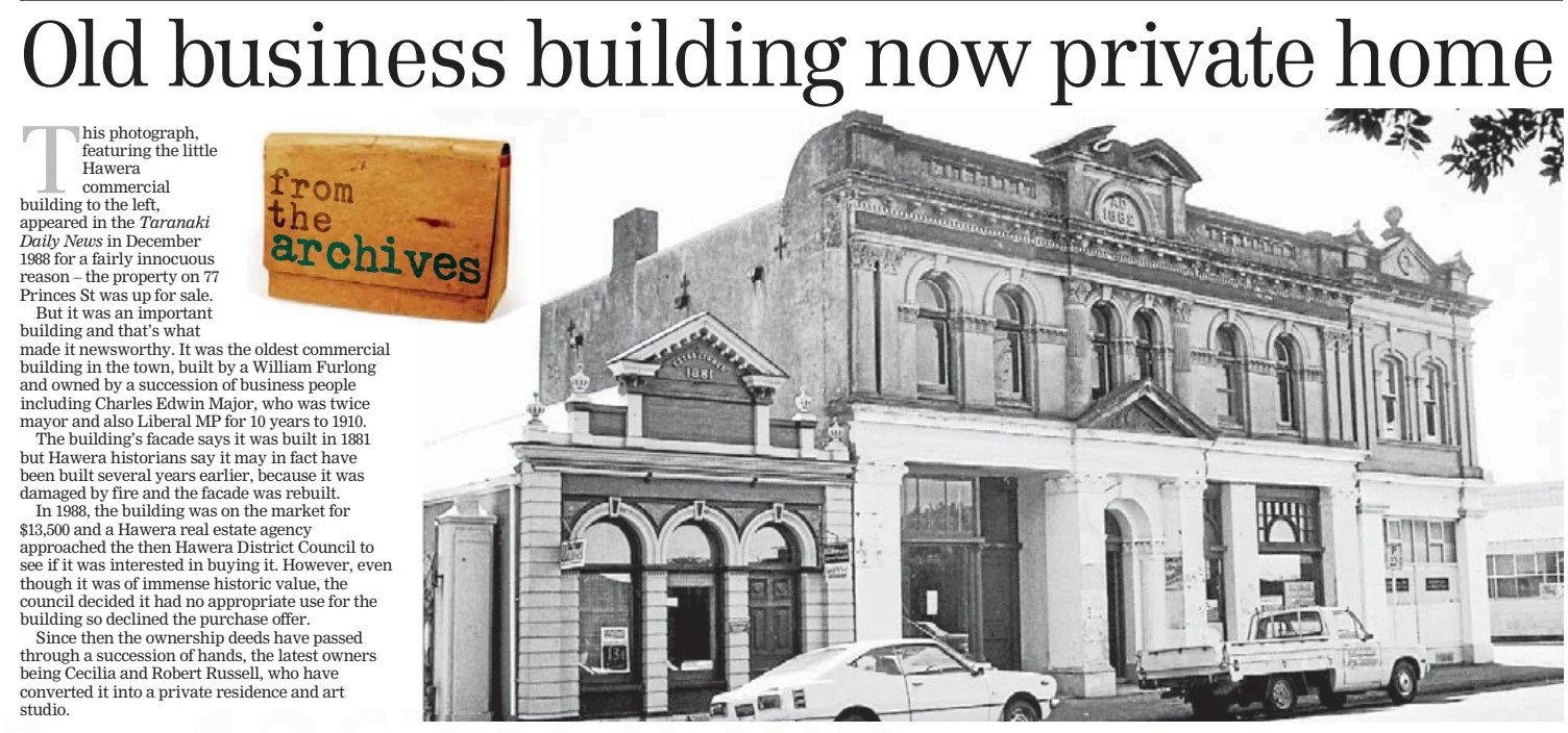 Old business building now private home (Taranaki Daily News 27 April 2013)