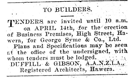 Shop High Street Hawera for Messrs George Syme & Co. [plans]