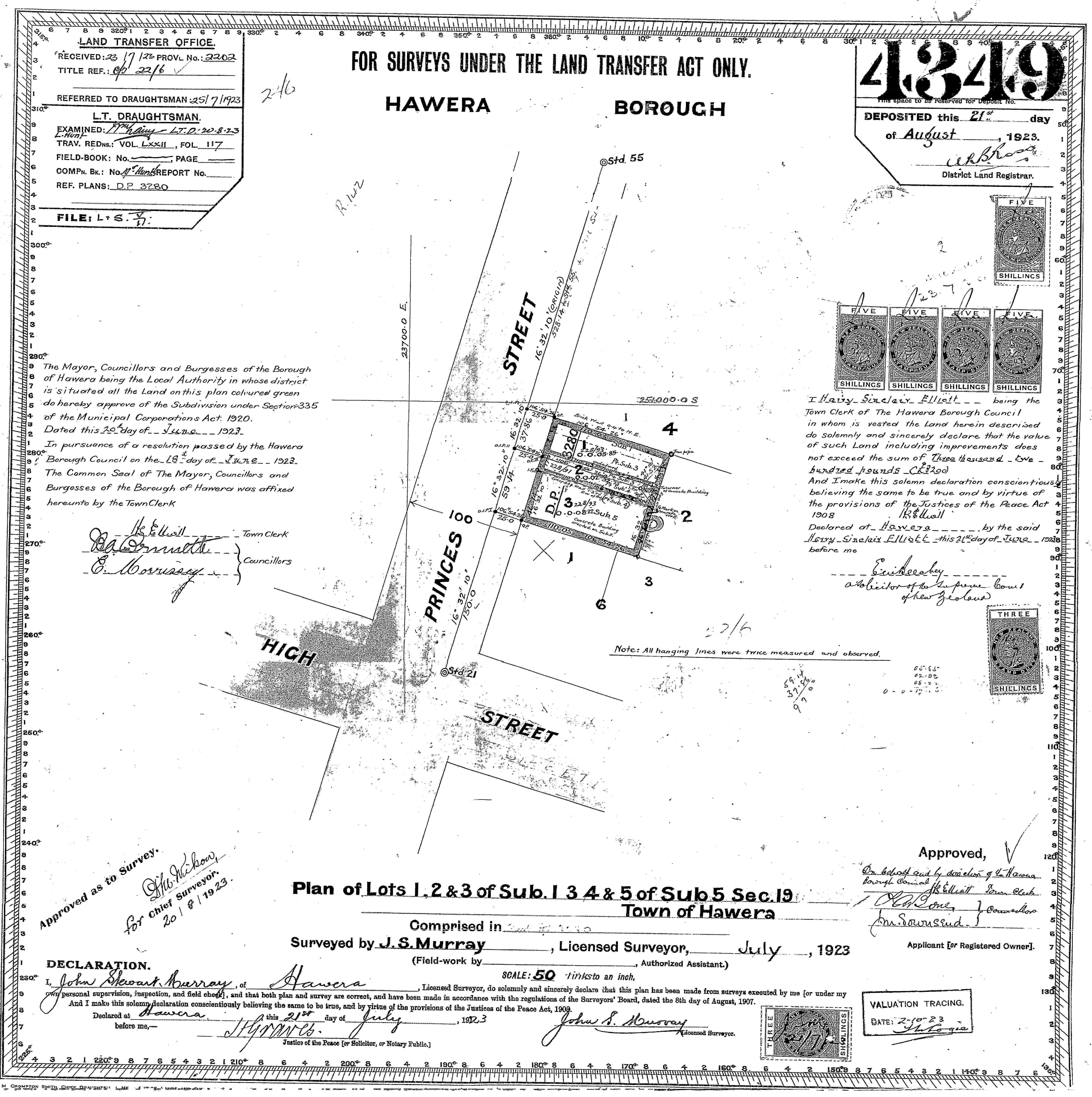 Taranaki (Lot 3) DP4349 Sheet 1 (1923), ICS Pre 300,000 Cadastral Plan Index (Imaged by LINZ)
