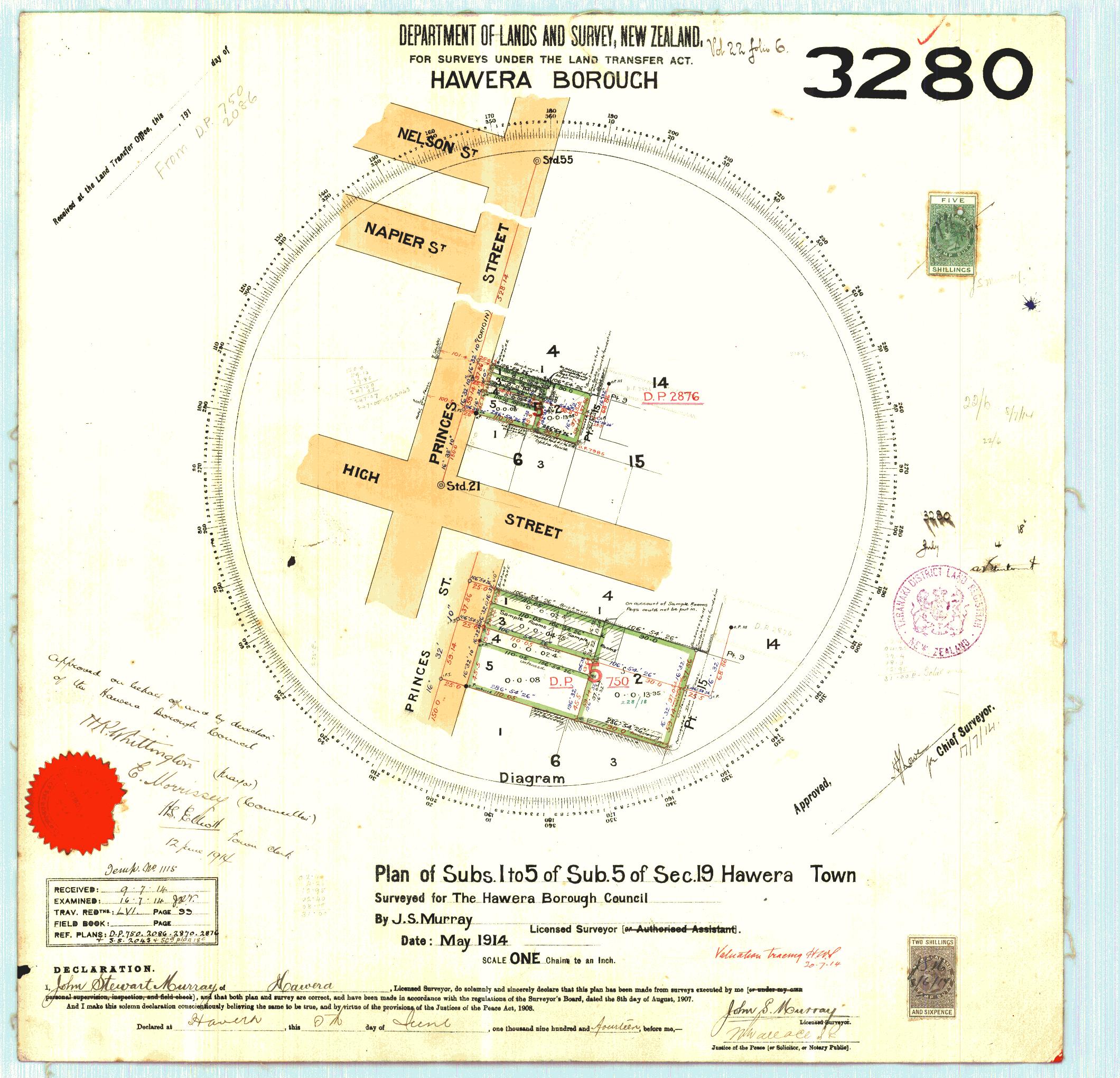 Hawera Crown Grant Map (1899), Archives New Zealand.