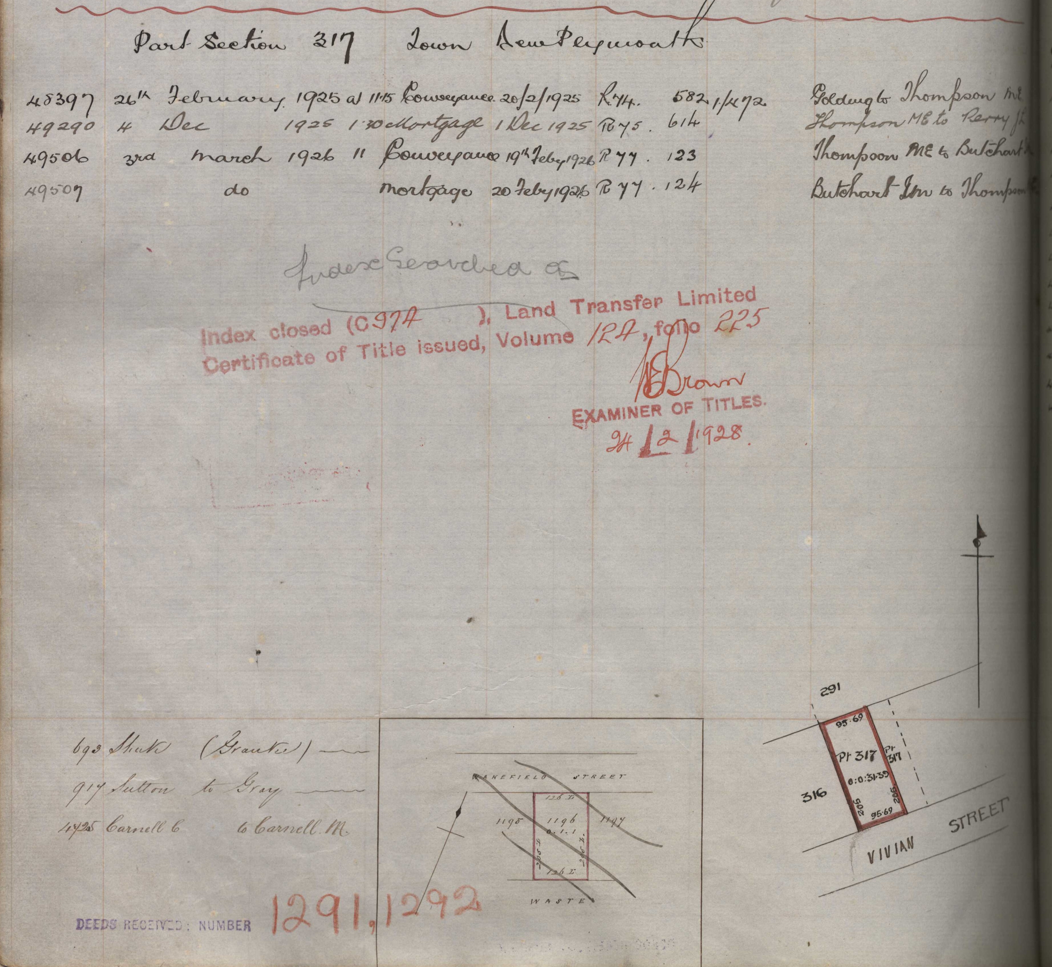 Town Section (Part) 317Taranaki Land Deeds Index I1 page 481. (Archives New Zealand)
