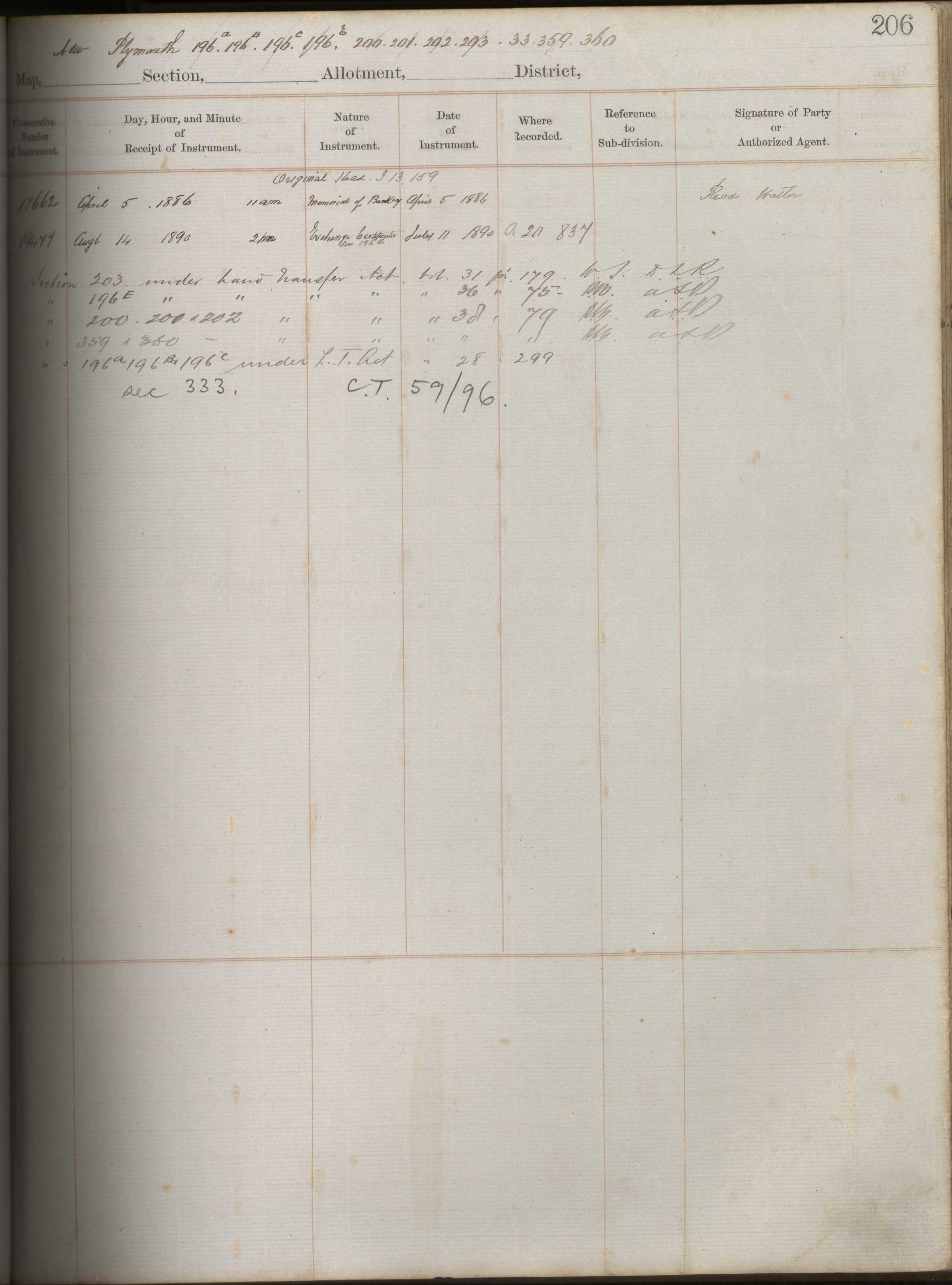 Town Belt A Section 196C, Taranaki Land Deed Index I4 page 206. (Archives New Zealand)