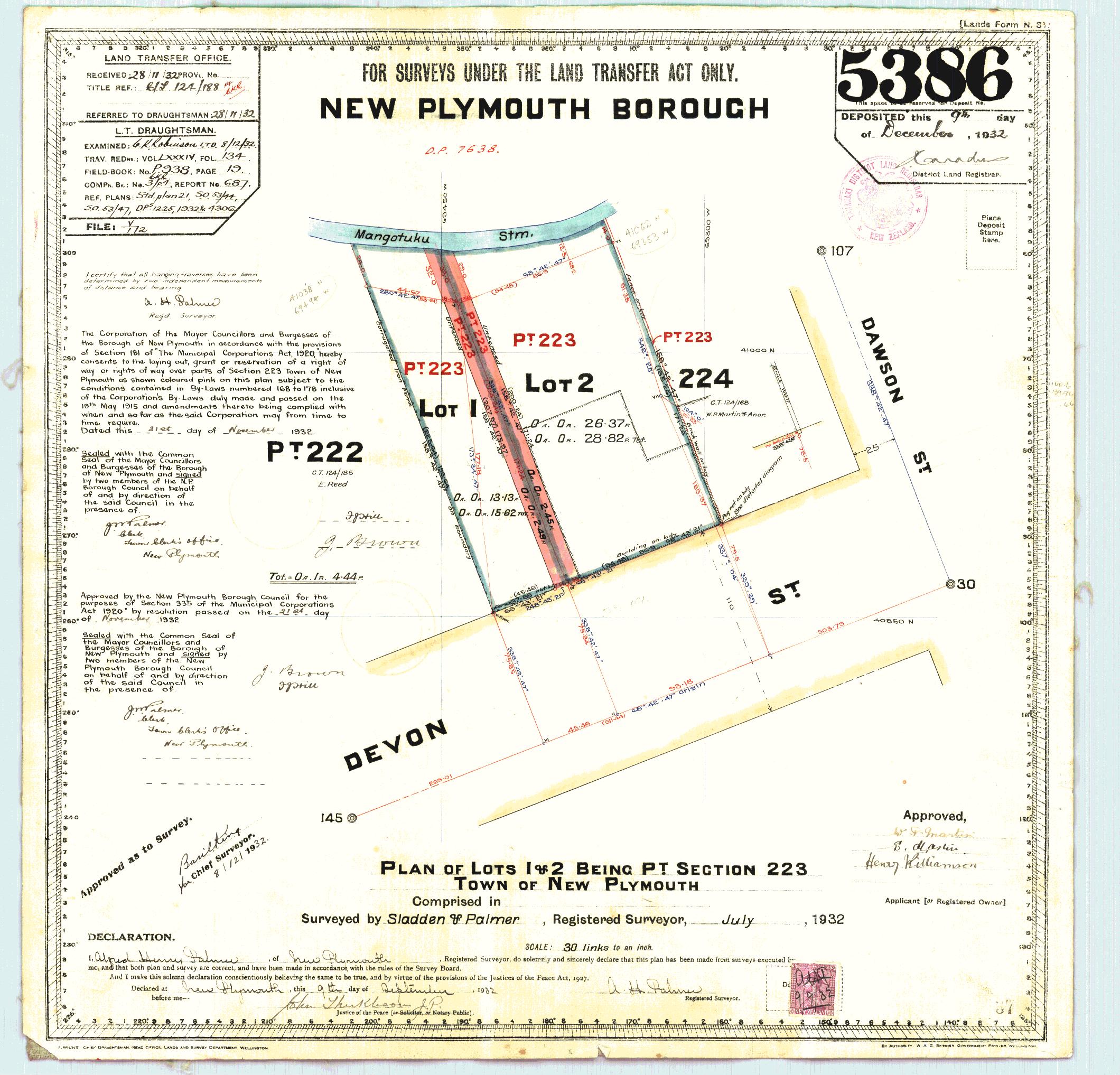 Taranaki (Lot 1) DP5386 Sheet 1 (1932), ICS Pre 300,000 Cadastral Plan Index (Imaged by LINZ)