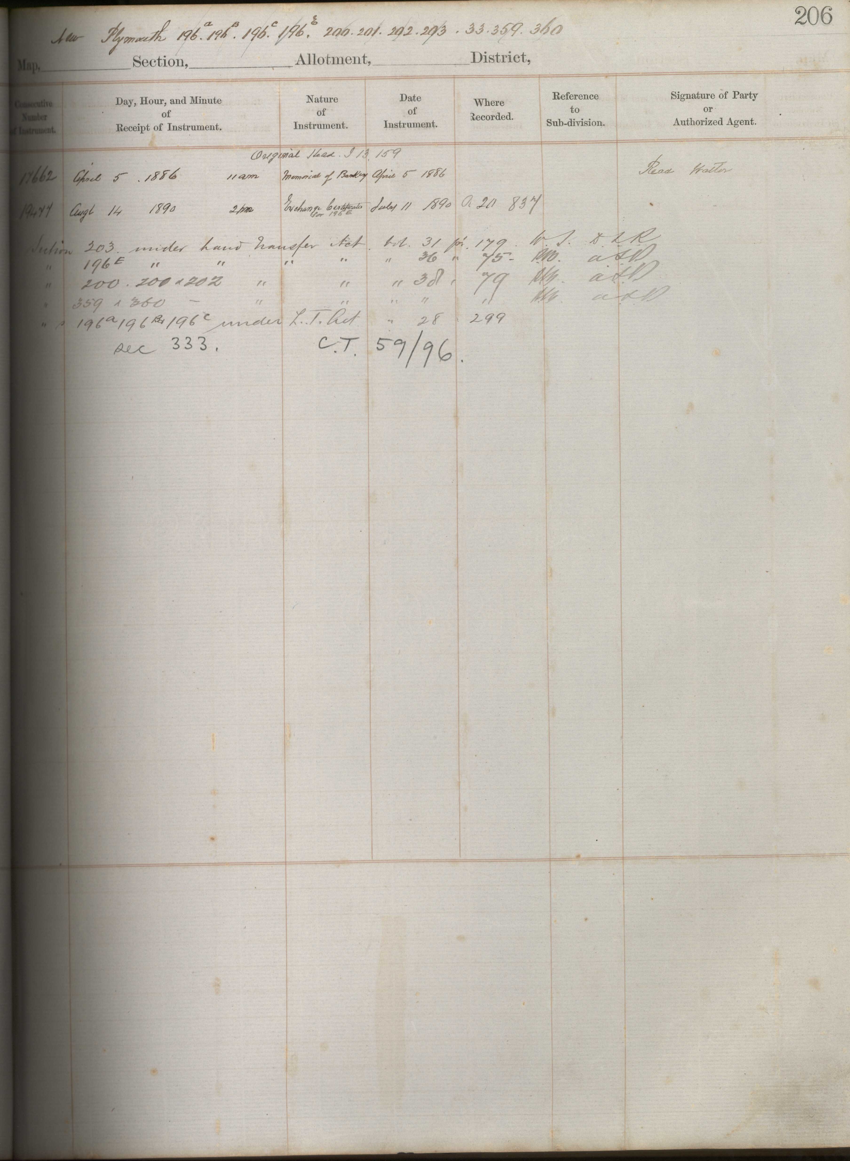 Town Section 202, Taranaki Land Deed Index I4 Page 206. (Archives New Zealand)