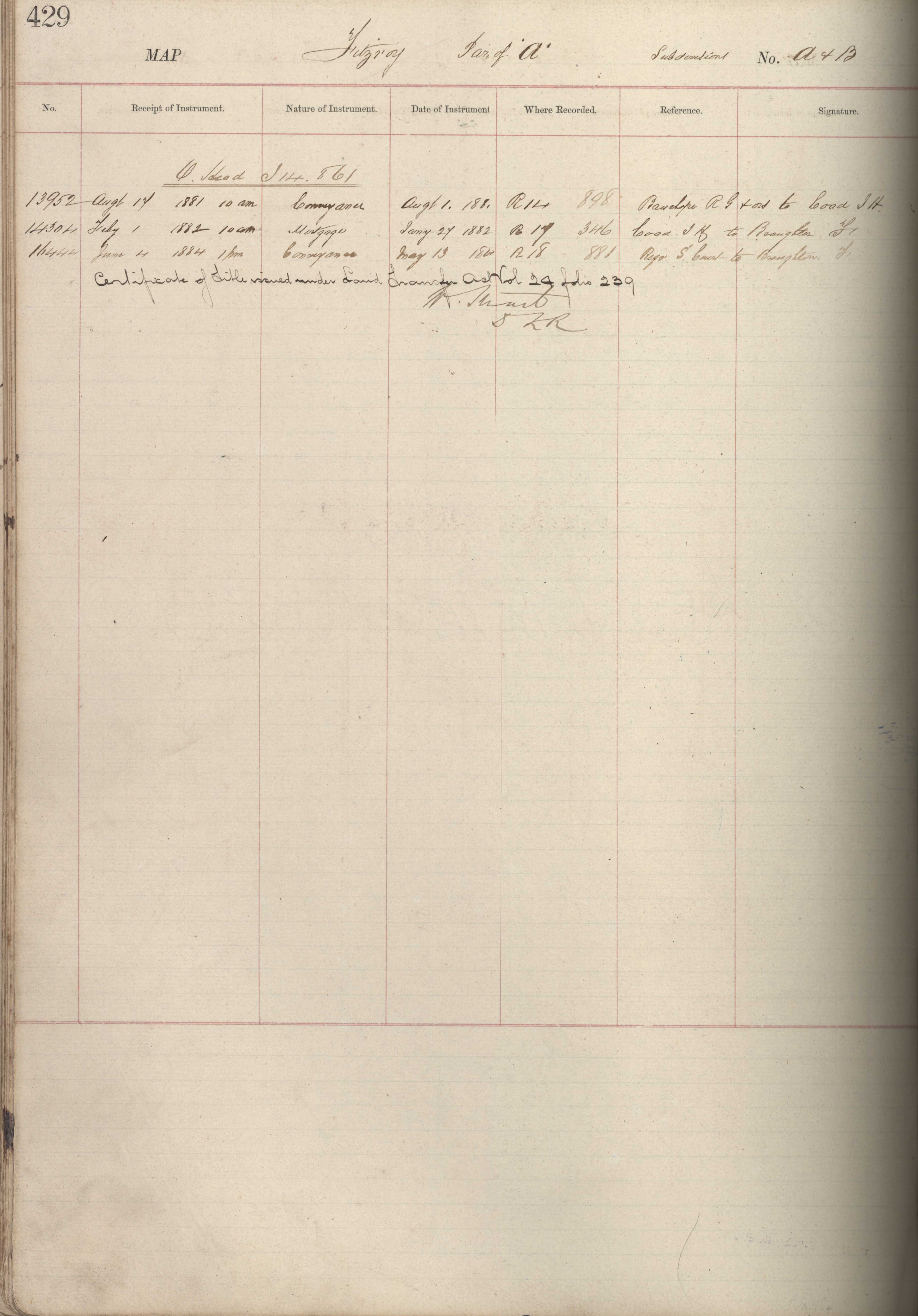 Town Belt (Part) A, Taranaki Land Deed Index I14 page 861. (Archives New Zealand)