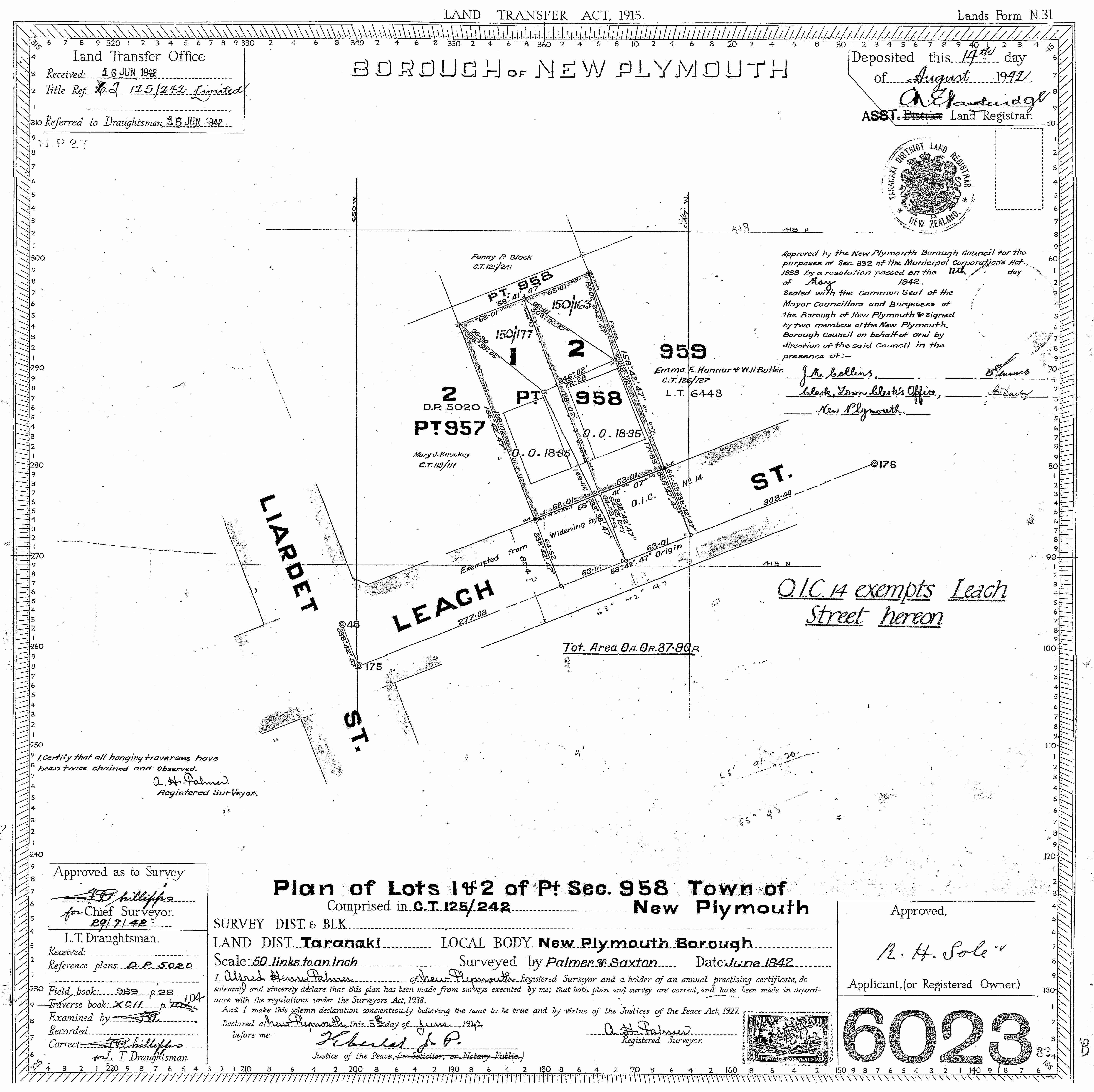 However, only one permit for the construction of a dwelling on Town Section 958 can be found in the NPBC permit books - this was granted to R. H. Sole on 30th January 1929, with Boon Bros as the contractors and an estimated construction cost of £1000. It seems likely that this permit relates to the construction of the present dwelling; although the use of rusticated boarding is unusual for a house constructed in 1929.
