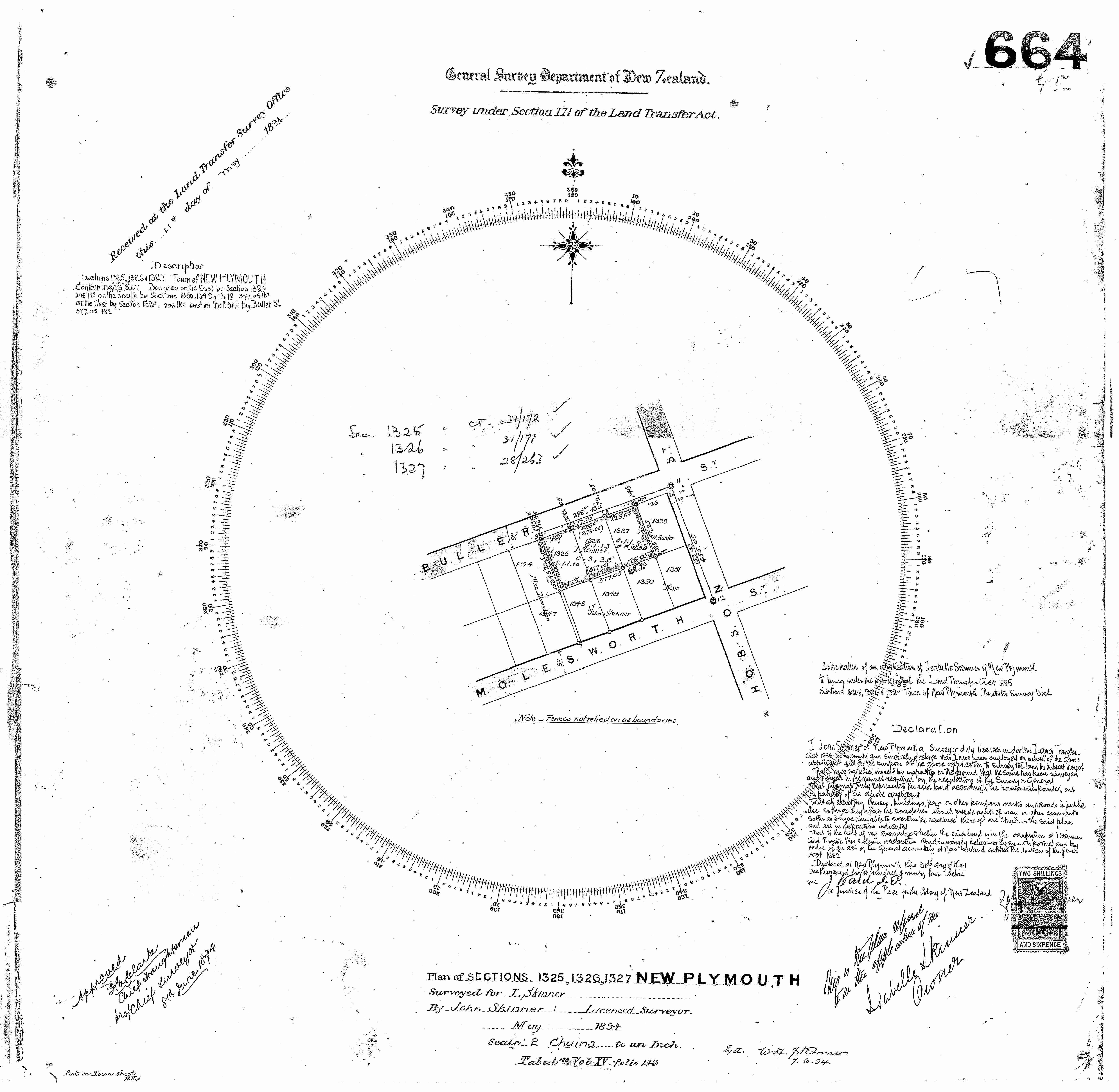 Taranaki DP664 Sheet 1 (1894), ICS Pre 300,000 Cadastral Plan Index (Imaged by LINZ)