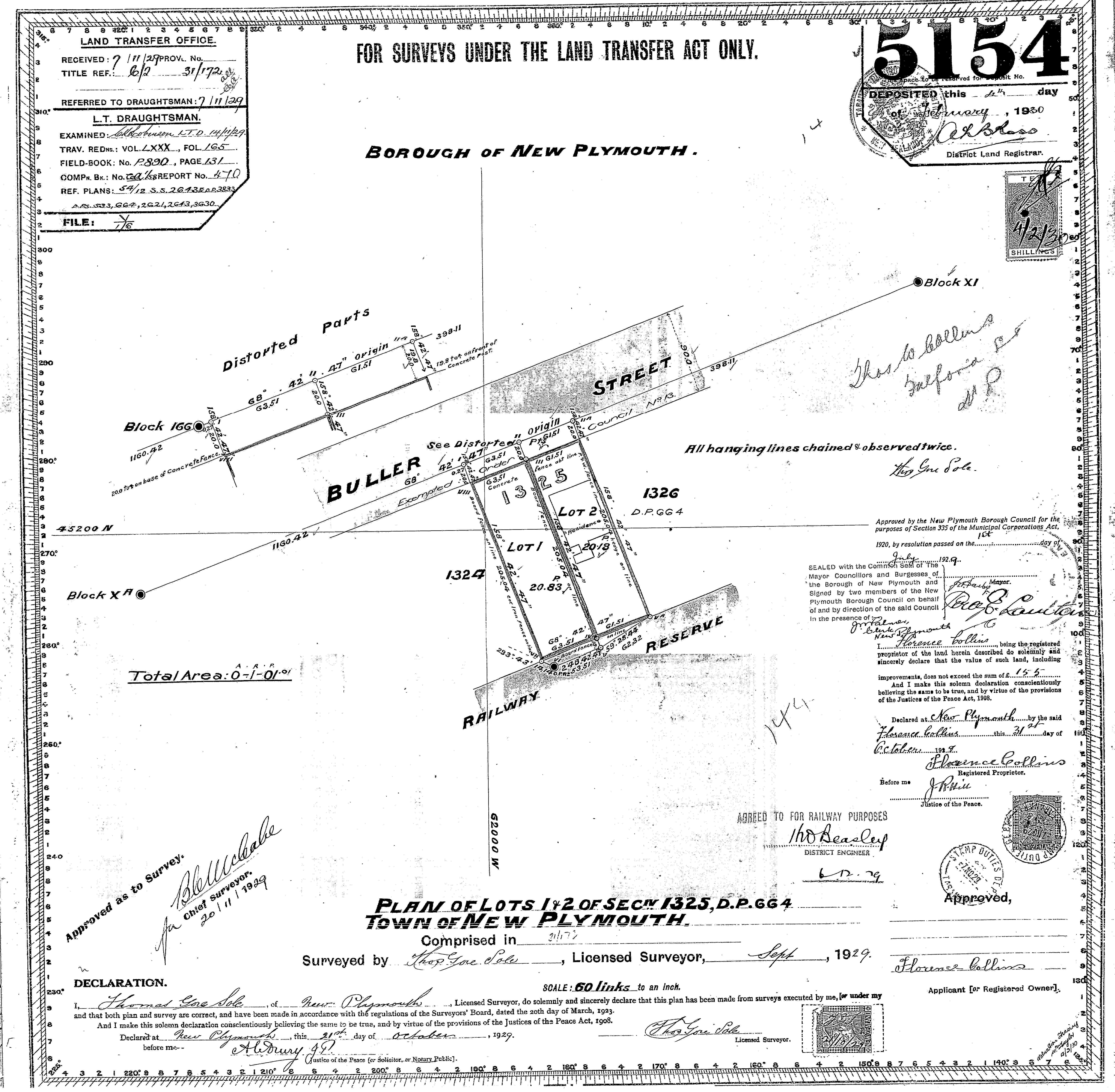Taranaki (Lot 1) DP5154 Sheet 1 (1929), ICS Pre 300,000 Cadastral Plan Index (Imaged by LINZ)