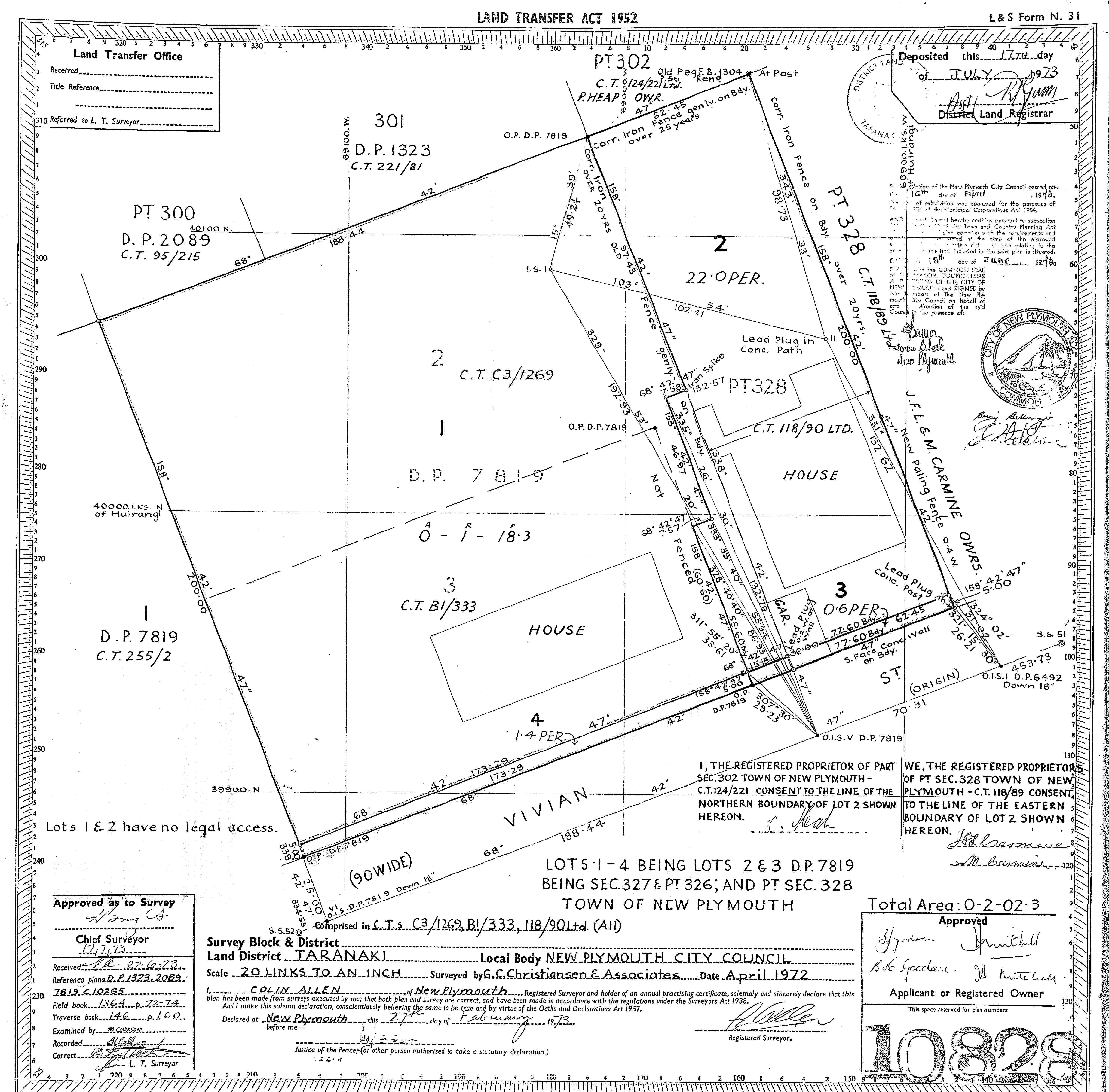 Taranaki DP10828 Sheet 1 (1972), ICS Pre 300,000 Cadastral Plan Index (Imaged by LINZ)