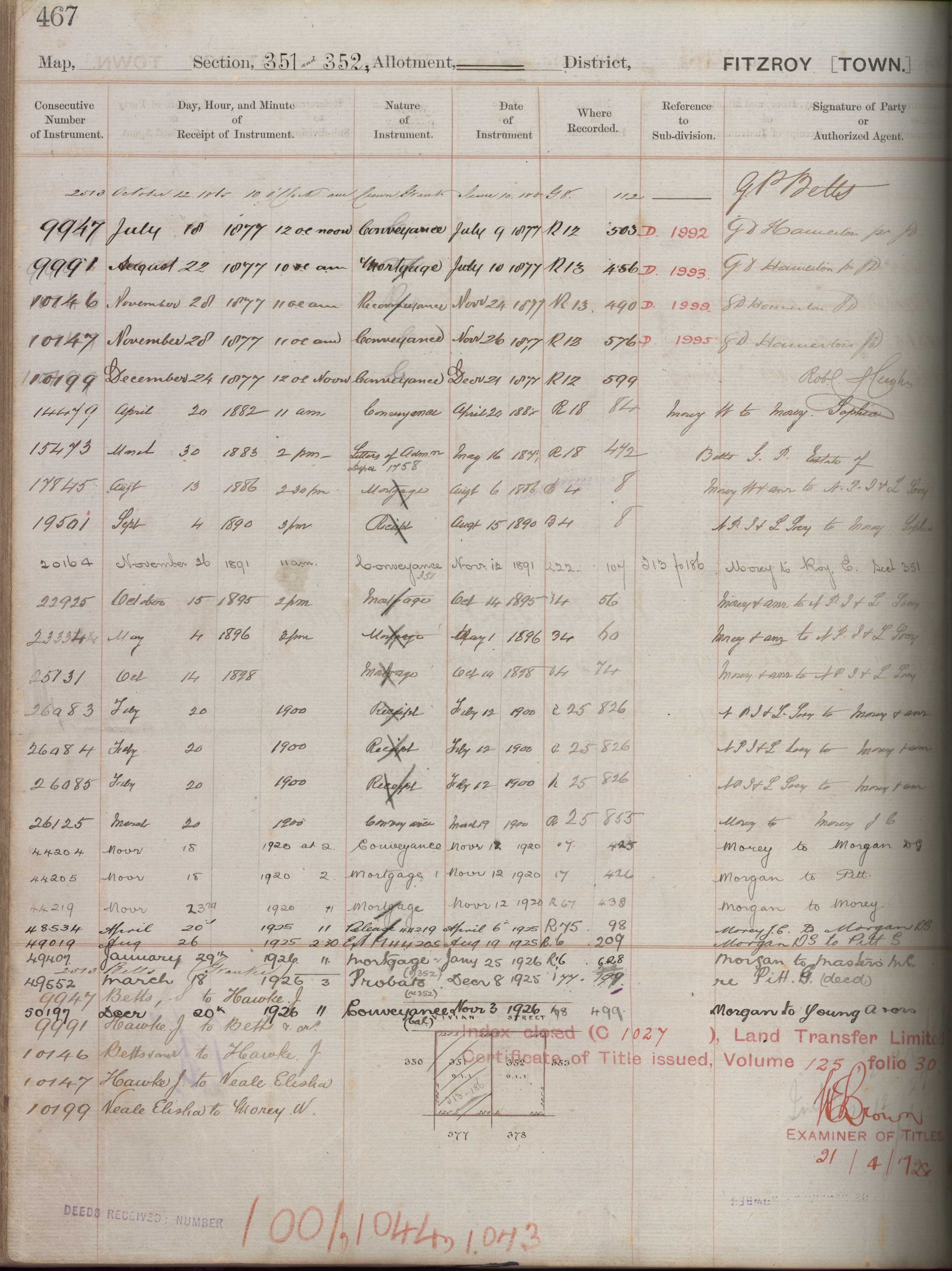 *A permit was issued by the Borough Council to James Clewer Morey on 3 March 1908 for a residence on Town Section 352 and it's likely that this relates to 95 Vivian Street. The estimated cost was £590, and the architect was listed as Frank Messenger.