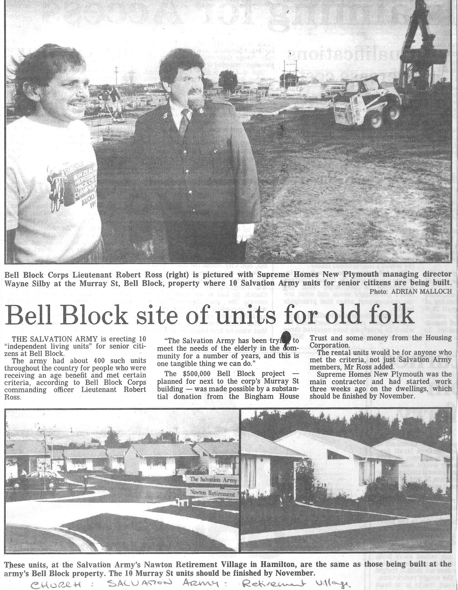 Bell Block site of units for old folk (Daily News 18 July 1991)