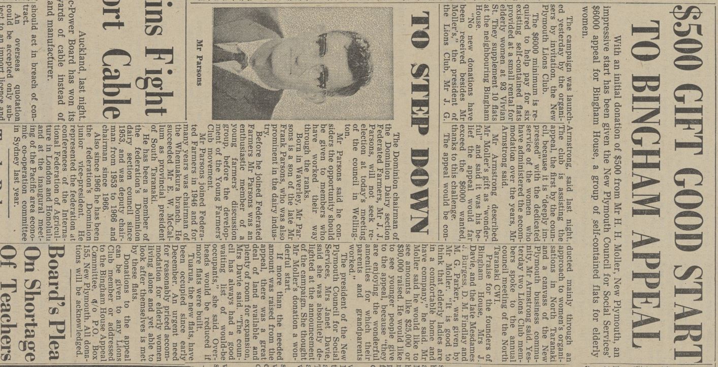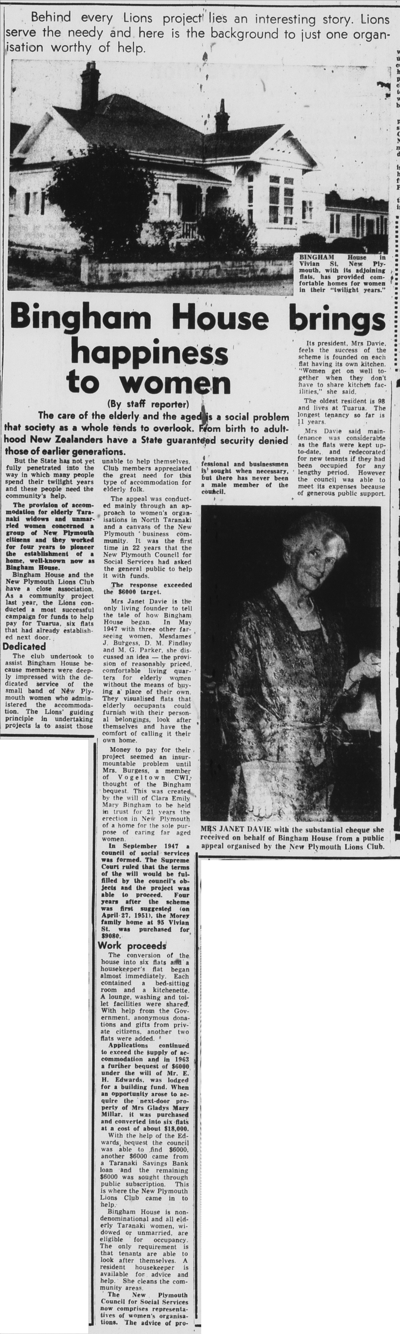 Bingham House brings happiness to women (Taranaki Herald 13 March 1970)