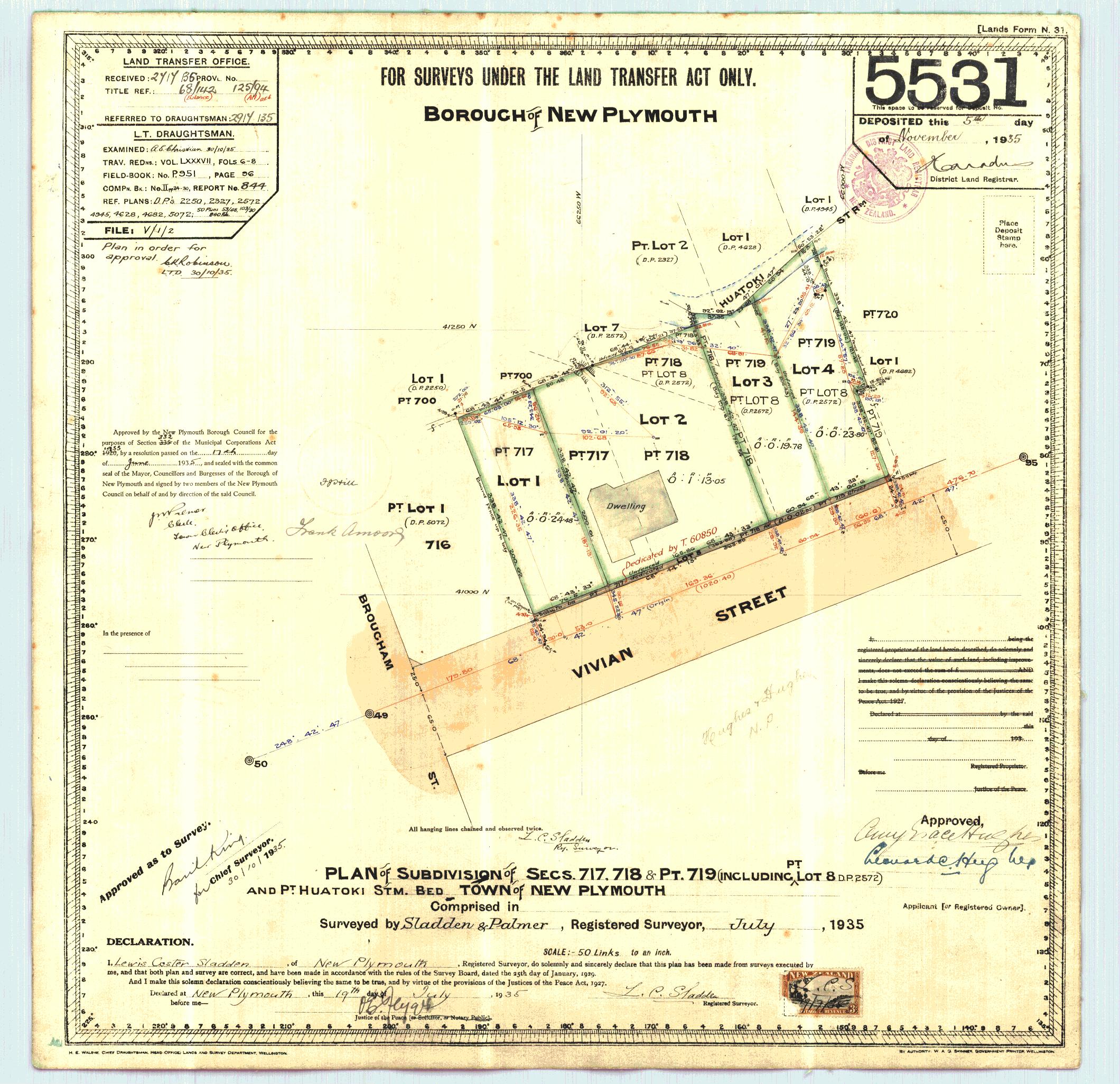 Taranaki DP5531 Sheet 1 (1935), ICS Pre 300,000 Cadastral Plan Index (Imaged by LINZ)