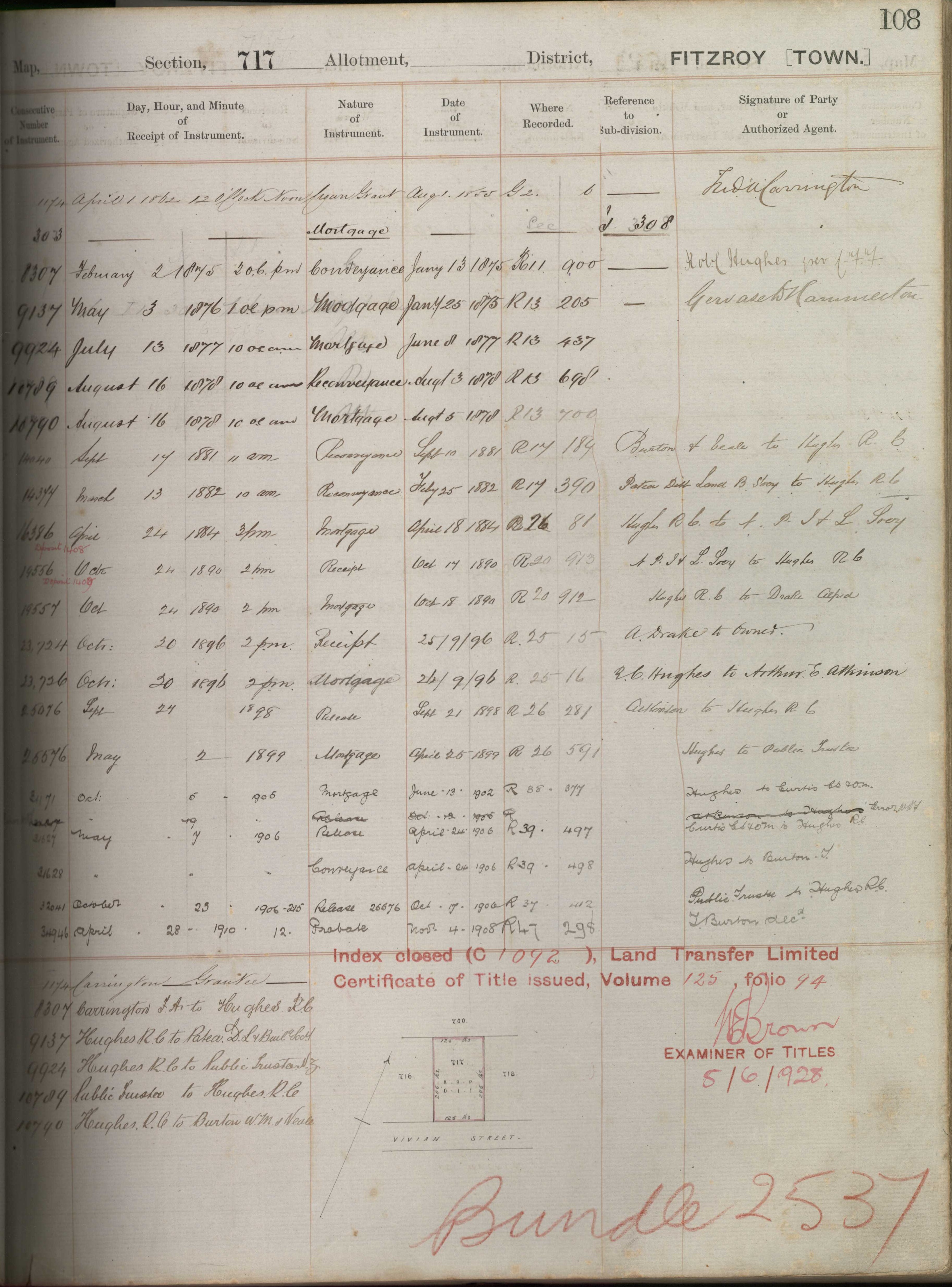 Town Section 717, Taranaki Land Deed Index I3 page 108. (Archives New Zealand)