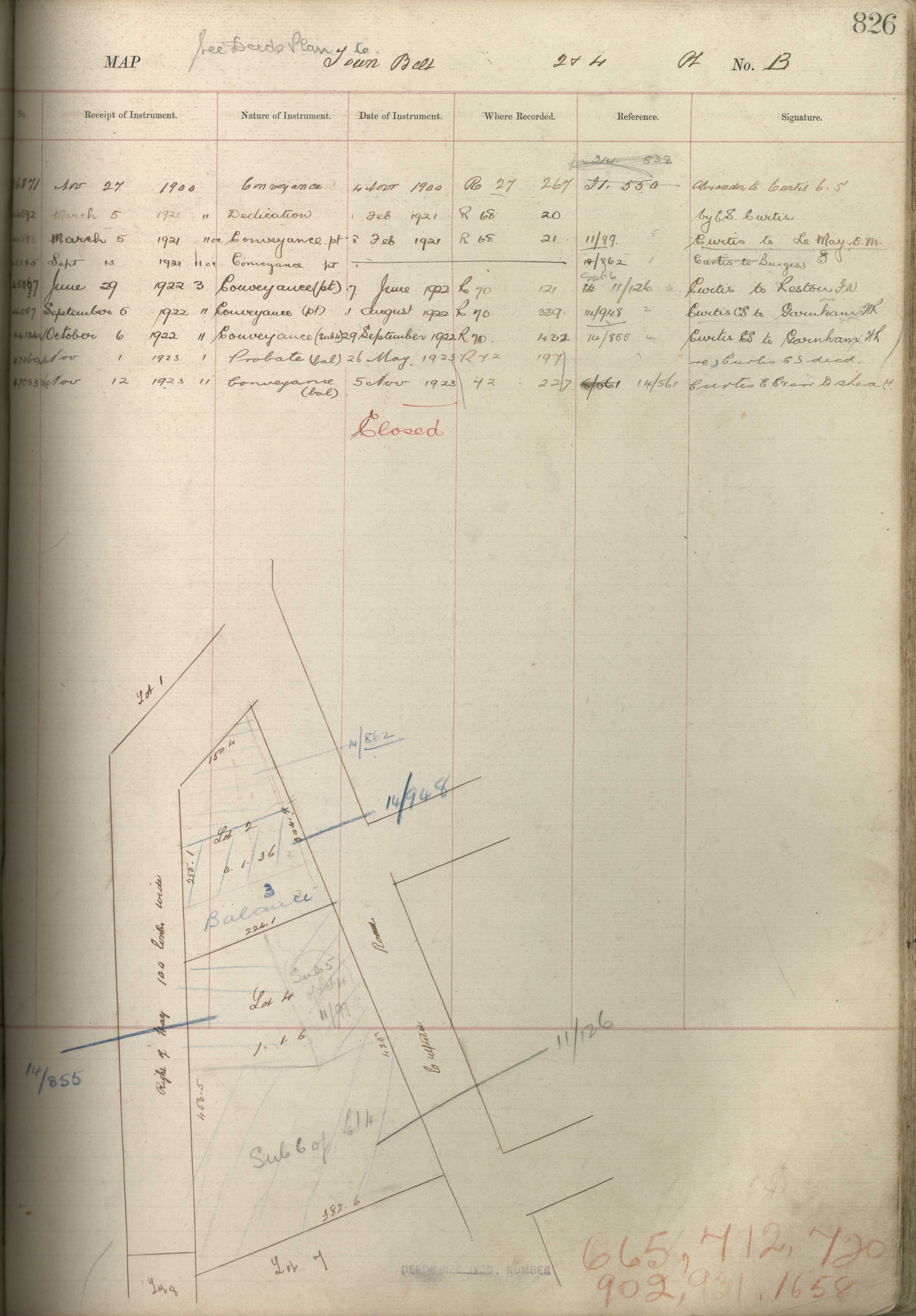Town Belt (Part) B, Taranaki Land Deeds Index I14 page 826. (Archives New Zealand)