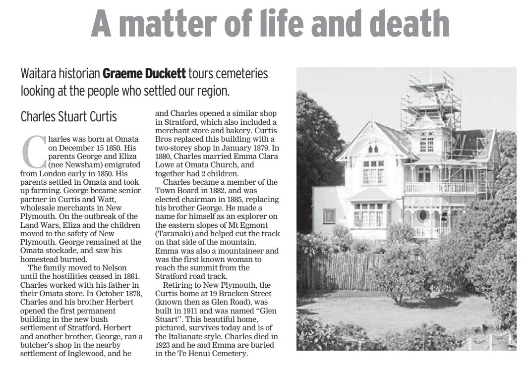 The author Helen Brown was brought up in the house and reminisced about her upbringing there in a Taranaki Herald article in 1987.