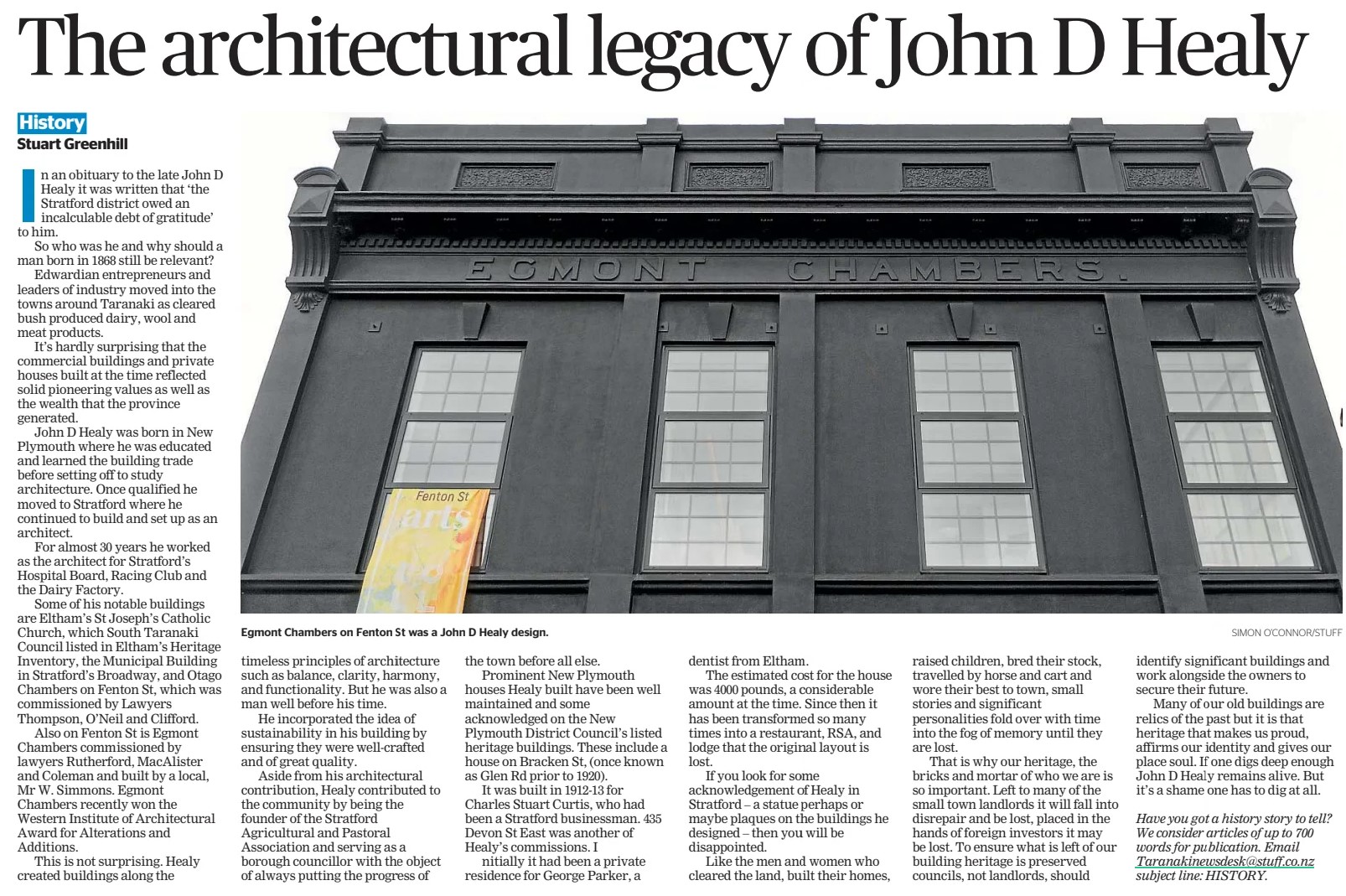 The architectural legacy of John D Healy (Taranaki Daily News 22 June 2019)