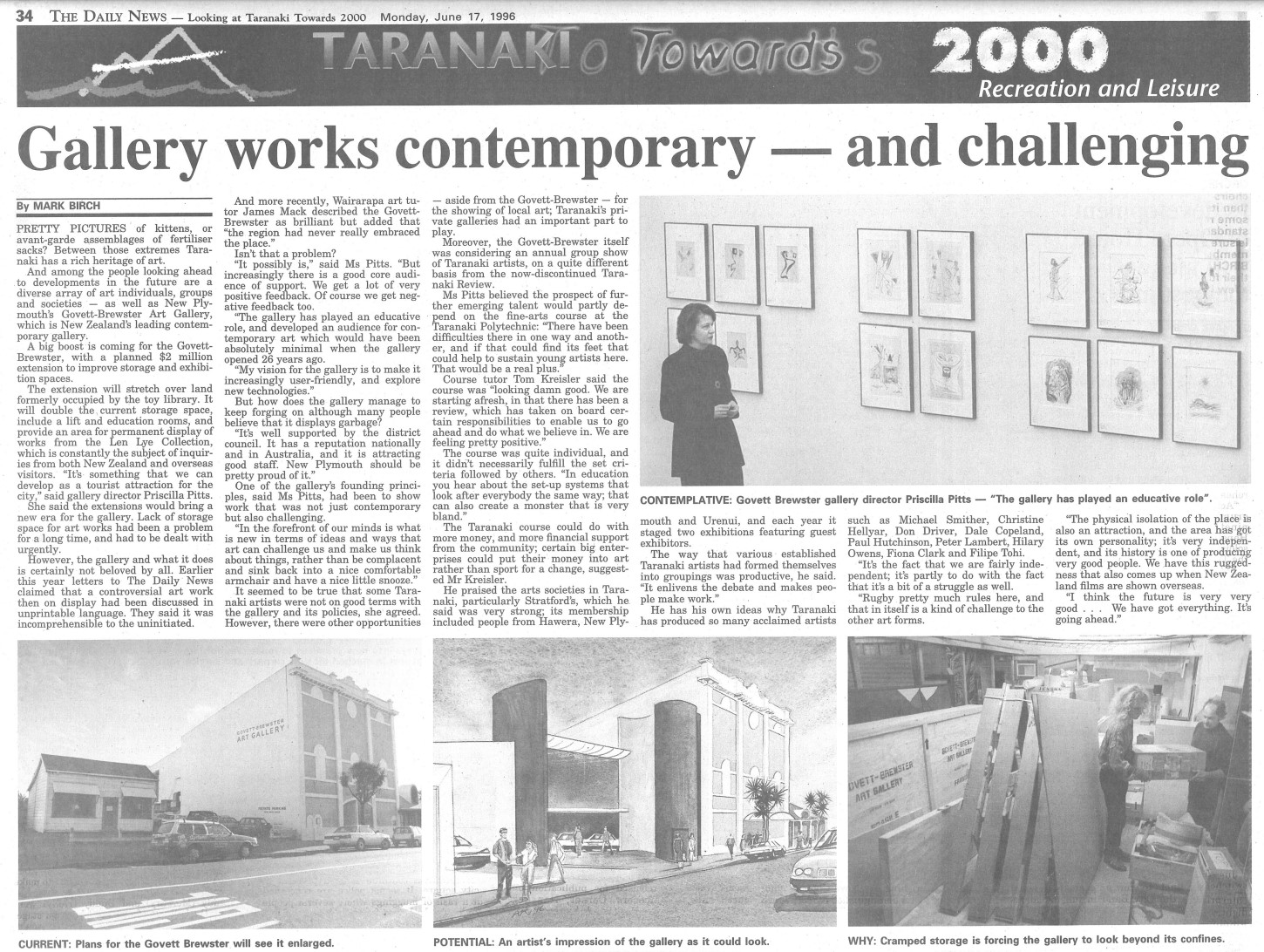 Gallery works contemporary - and challenging (Daily News Supplement "Towards 2000" 17 June 1996)