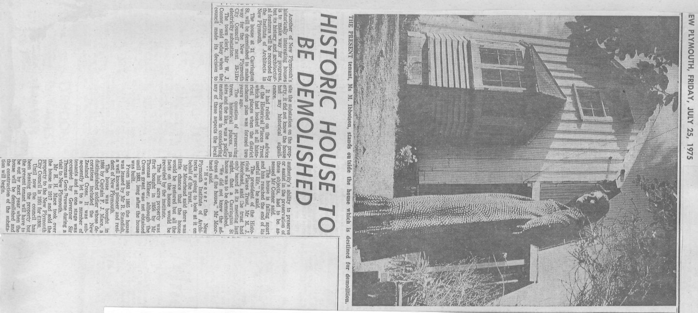 It was then leased out and in 1975 was set to be demolished to make way for an electricity substation. However, in an agreement reached between the Taranaki County Council and Technic Properties Ltd, the cottage was moved to Karina Road in Merrilands. It was bought by Enid and Colin Hutchinson in 1989 and is now known as Foxglove Cottage.