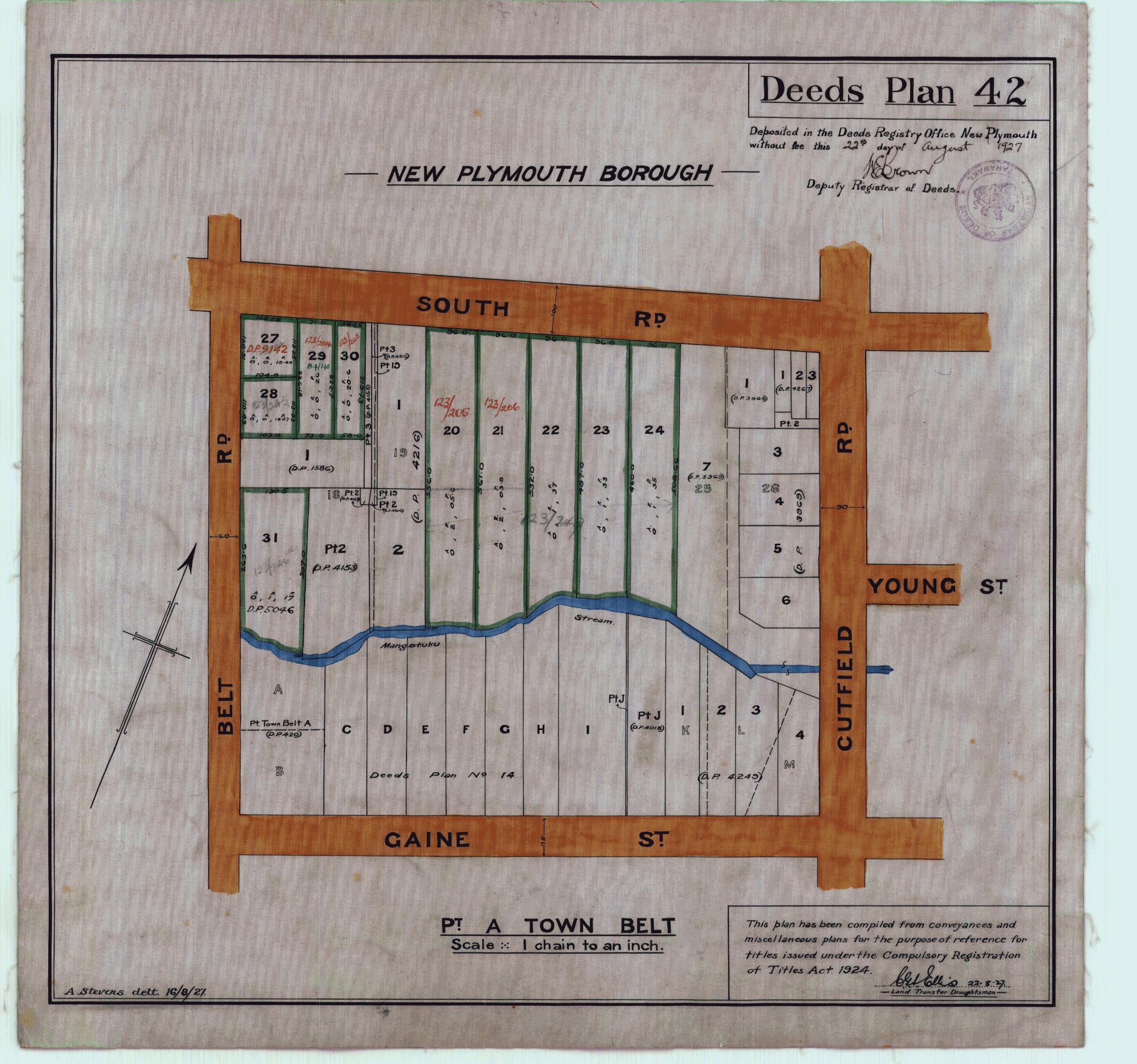 Taranaki DEED42 Sheet 1 Pt A Town Belt (1927), ICS Pre 300,000 Cadastral Plan Index (Imaged by LINZ)