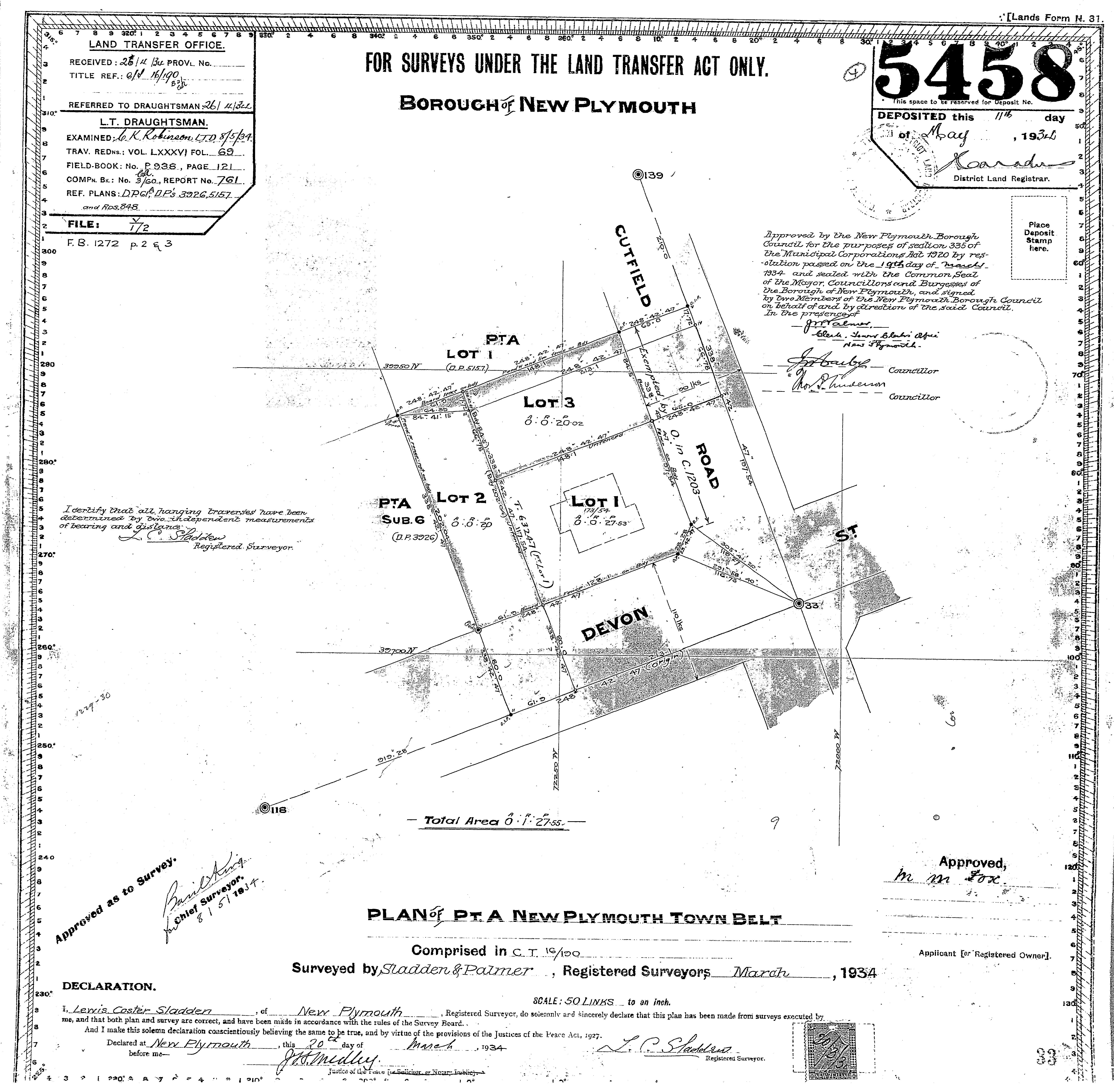 Taranaki (Lot 1) DP5458 Sheet 1 (1934), ICS Pre 300,000 Cadastral Plan Index (Imaged by LINZ)