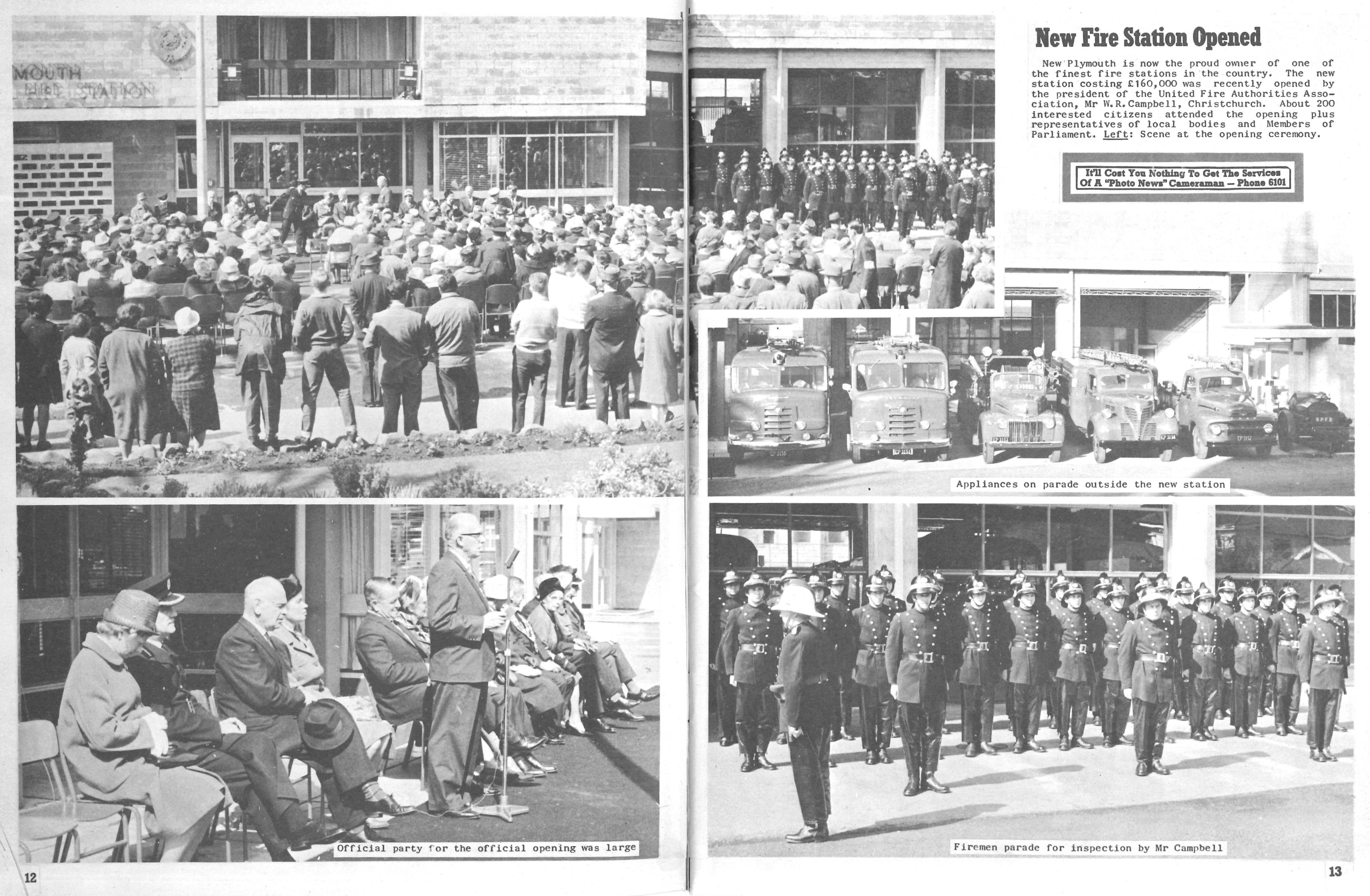 New Fire Station Opened (New Plymouth Photo News 30 October 1965 Issue # 115, pages 12 & 13, page 14)