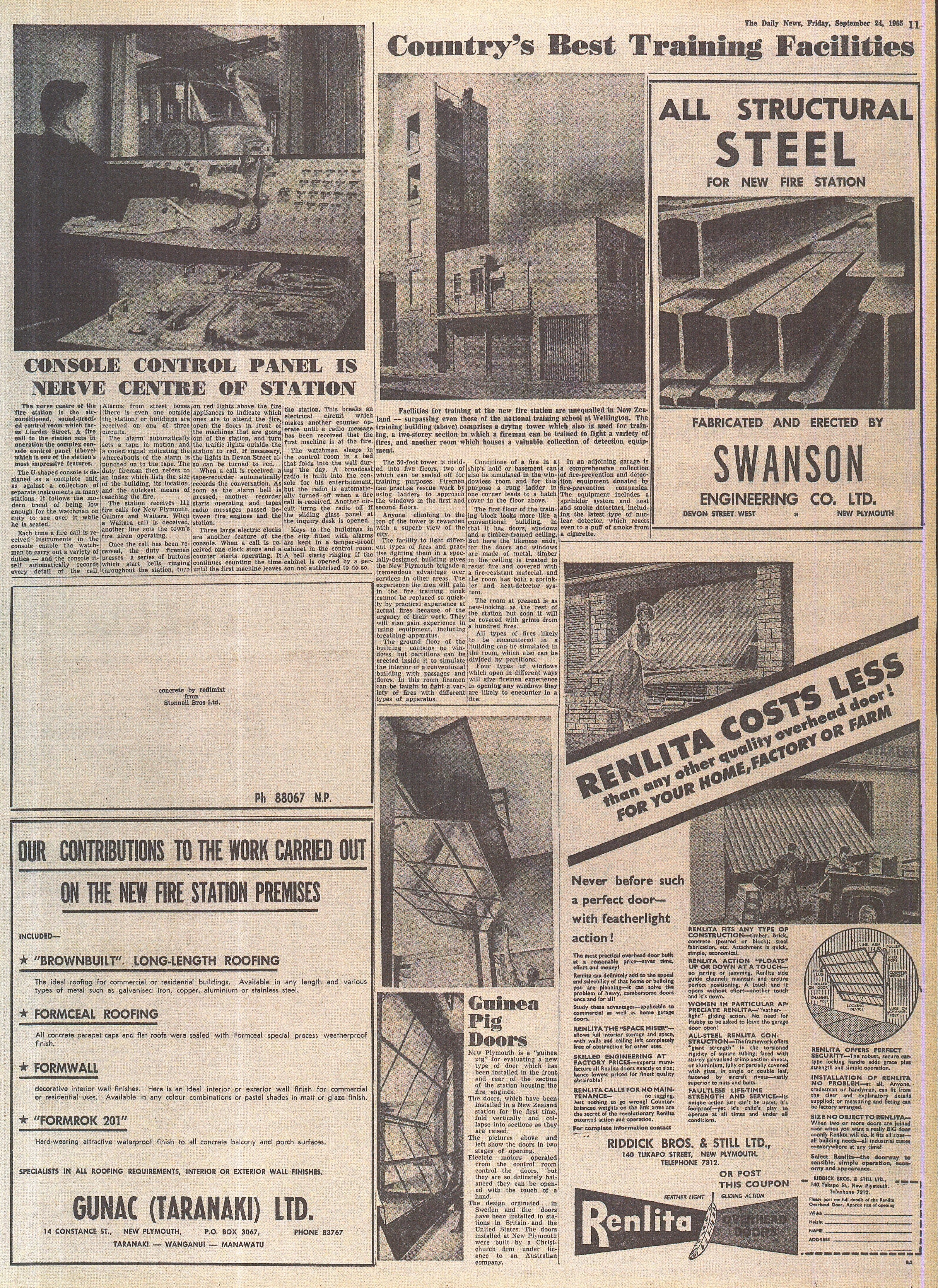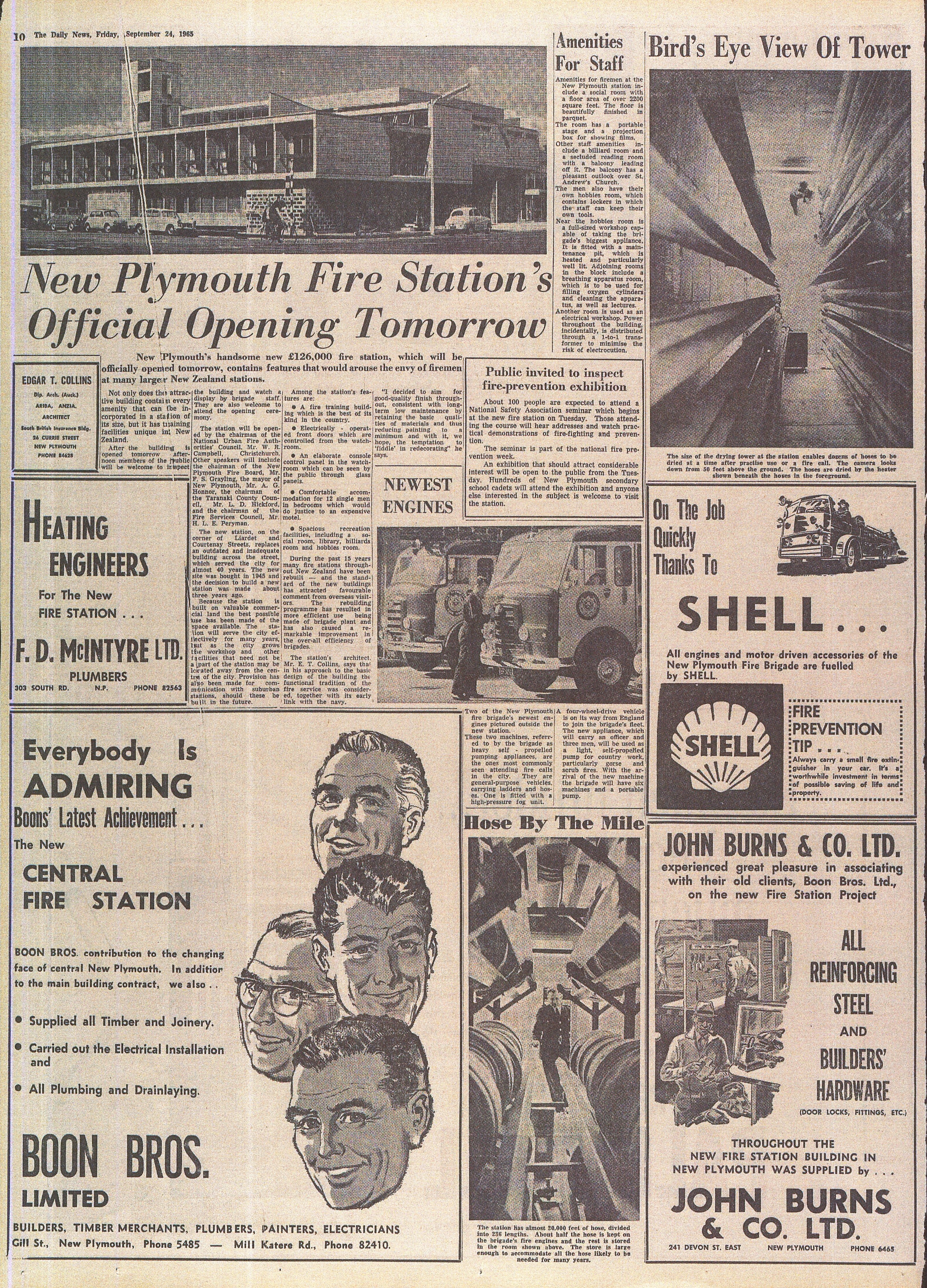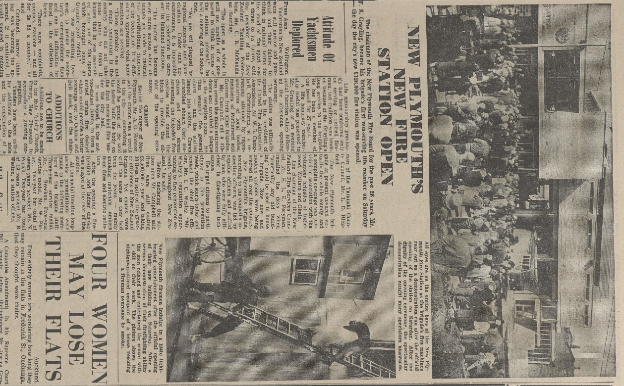 New Plymouth's Fire Station's Official Opening Tomorrow (Daily News 14 September 1965 pages 11 & 12)