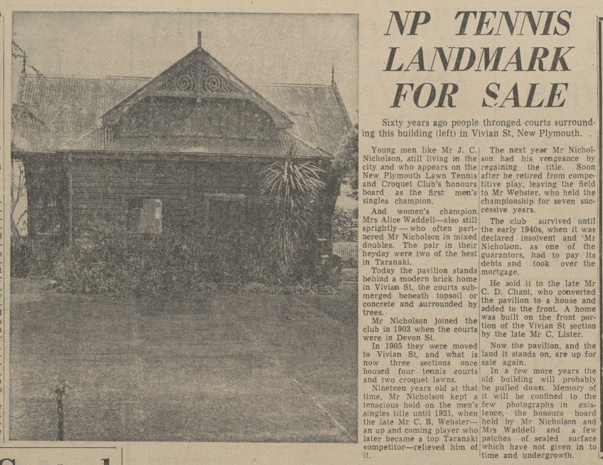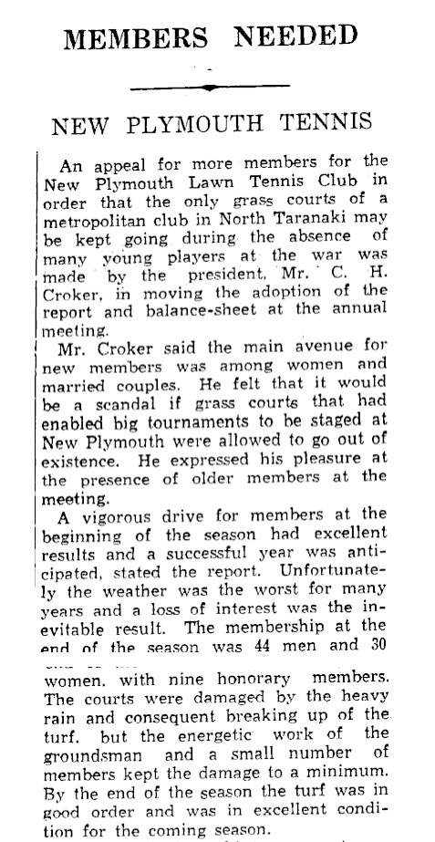 Tennis Club's move recalls players of note on its courts (Taranaki Daily News 3 September 1941)