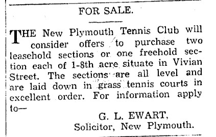 Tennis Club sections for purchase or lease (Taranaki Daily News 5 September 1941)