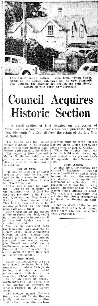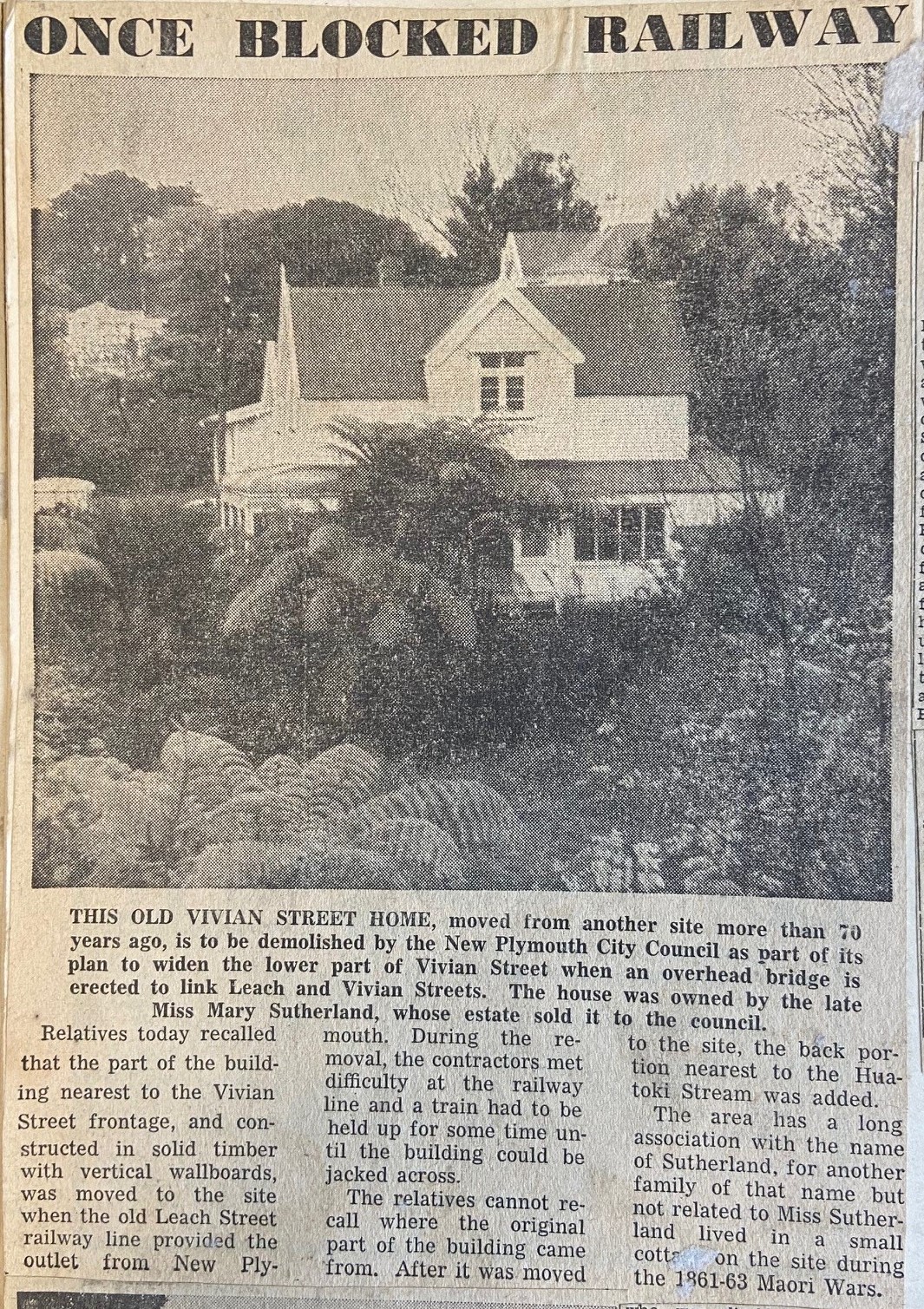 The house was purchased by the New Plymouth City Council in 1960 and in 1965 it was burnt to the ground by the New Plymouth Fire Service as a training exercise.