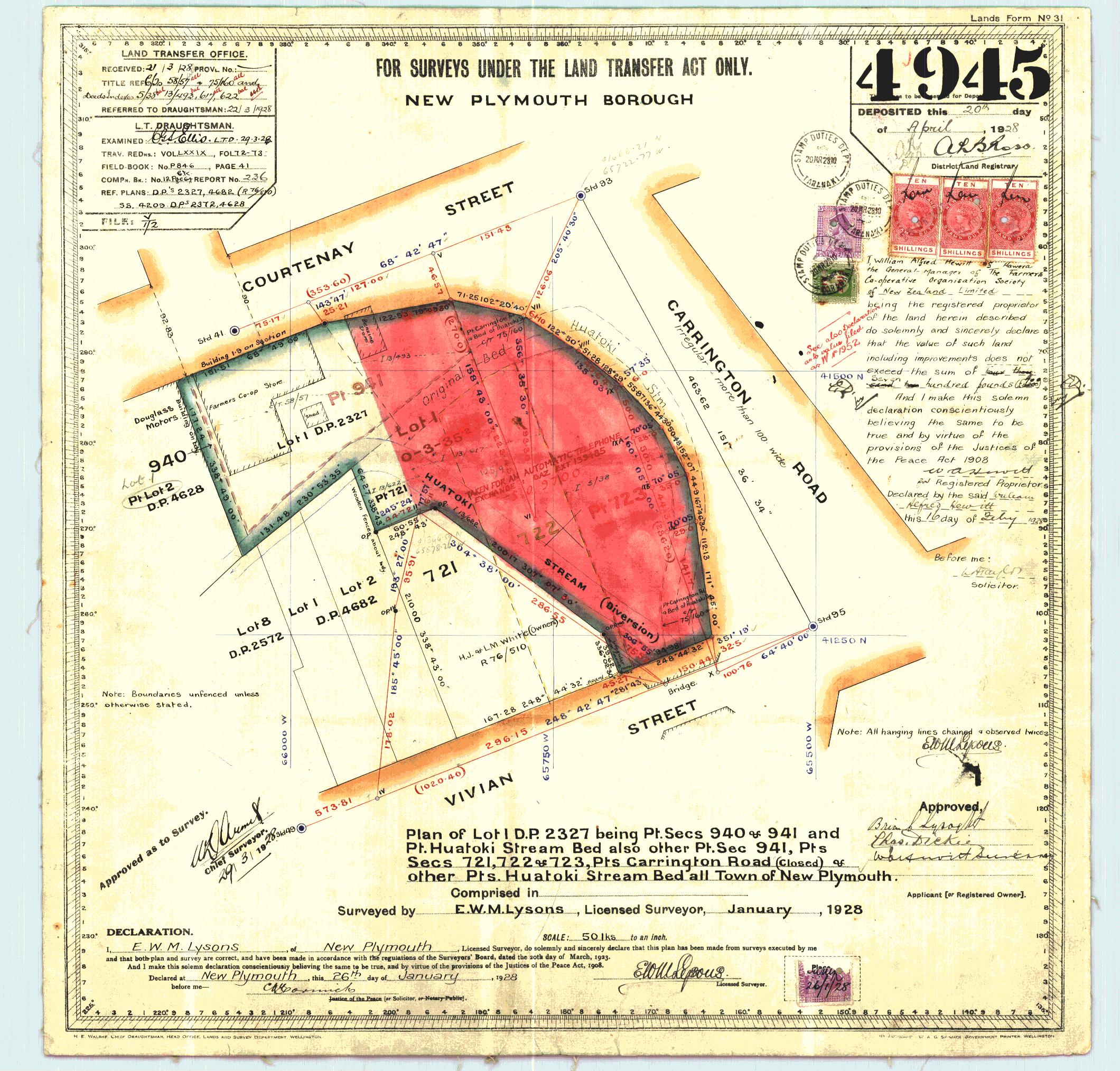 Taranaki DP4945 Sheet 1 (1928), ICS Pre 300,000 Cadastral Plan Index (Imaged by LINZ)