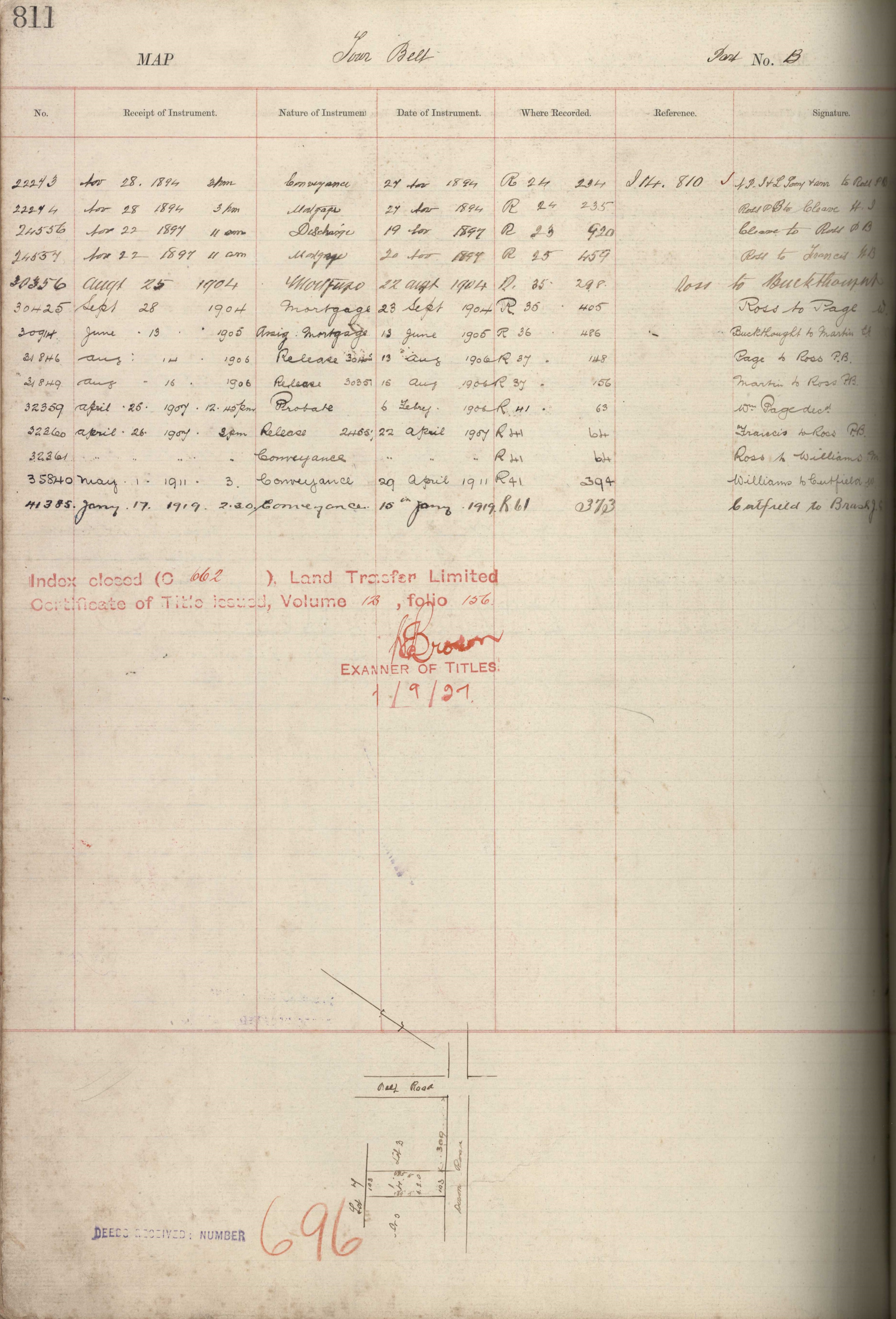 Town Belt (Part) B Taranaki Land Deed Index I14 Page 811. (Archives New Zealand)