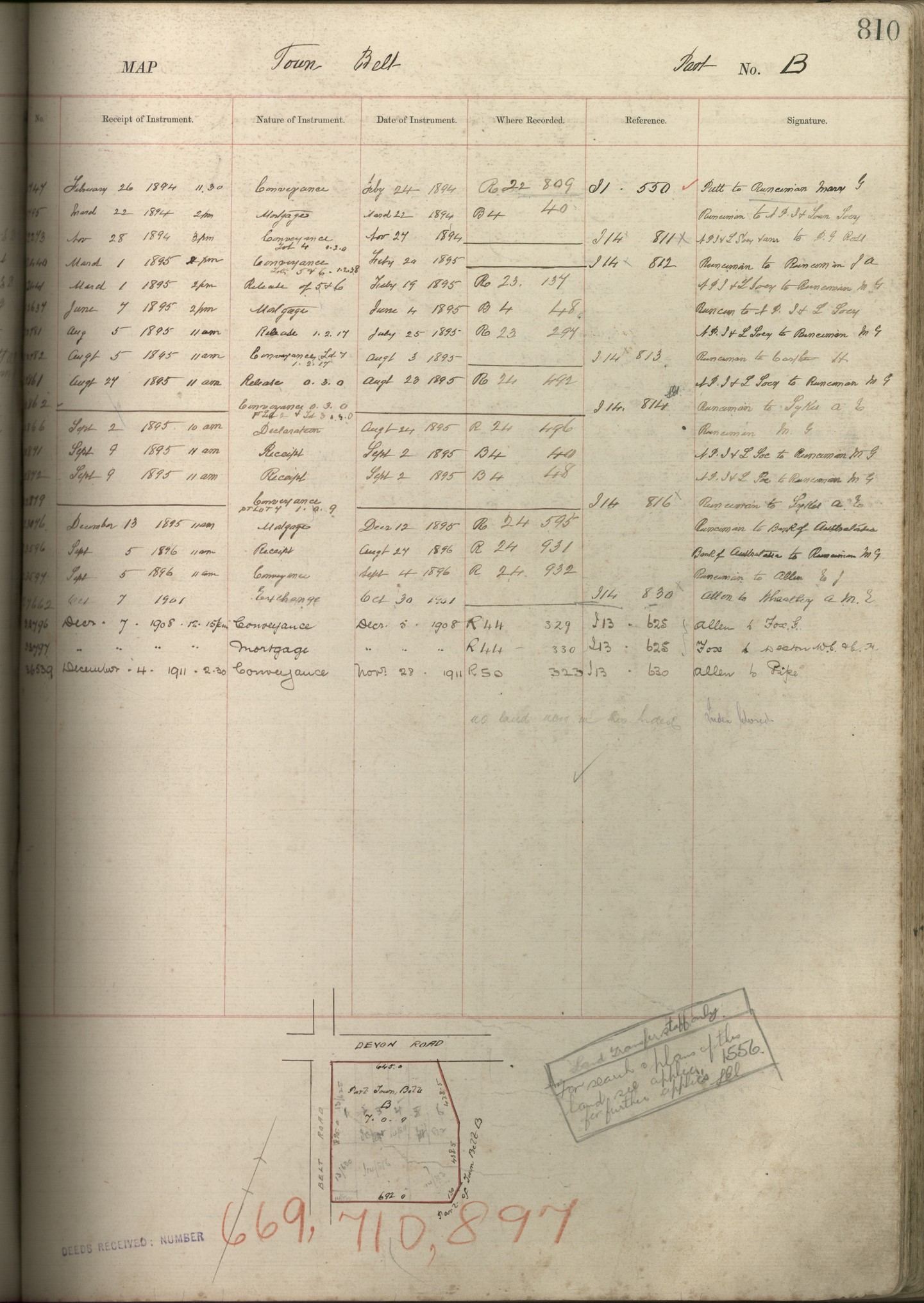 Town Belt (Part) B, Taranaki Land Deed Index I14 Pages 810. (Archives New Zealand)