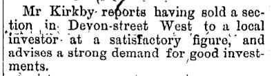 However, it doesn’t appear Mrs Bannerman initially lived at the property. From 1903 until 1906 a Mrs Jane Smart is listed in Stone’s Street Directories as living near this location. Then, from 1907 until 1909 the Stone’s Street Directories list both Jane Smart and Ann Bannerman living in the same address near this location. The final Stone’s Street directory to be produced in 1910 lists Jane Smart, Ann Bannerman, and Allan Keddie Smart (of Smart Bros Plumbing) all living at the same address near this location. Mrs Bannerman was still listed as living in Devon Street West, presumably at this address, in the 1914 Electoral Roll.