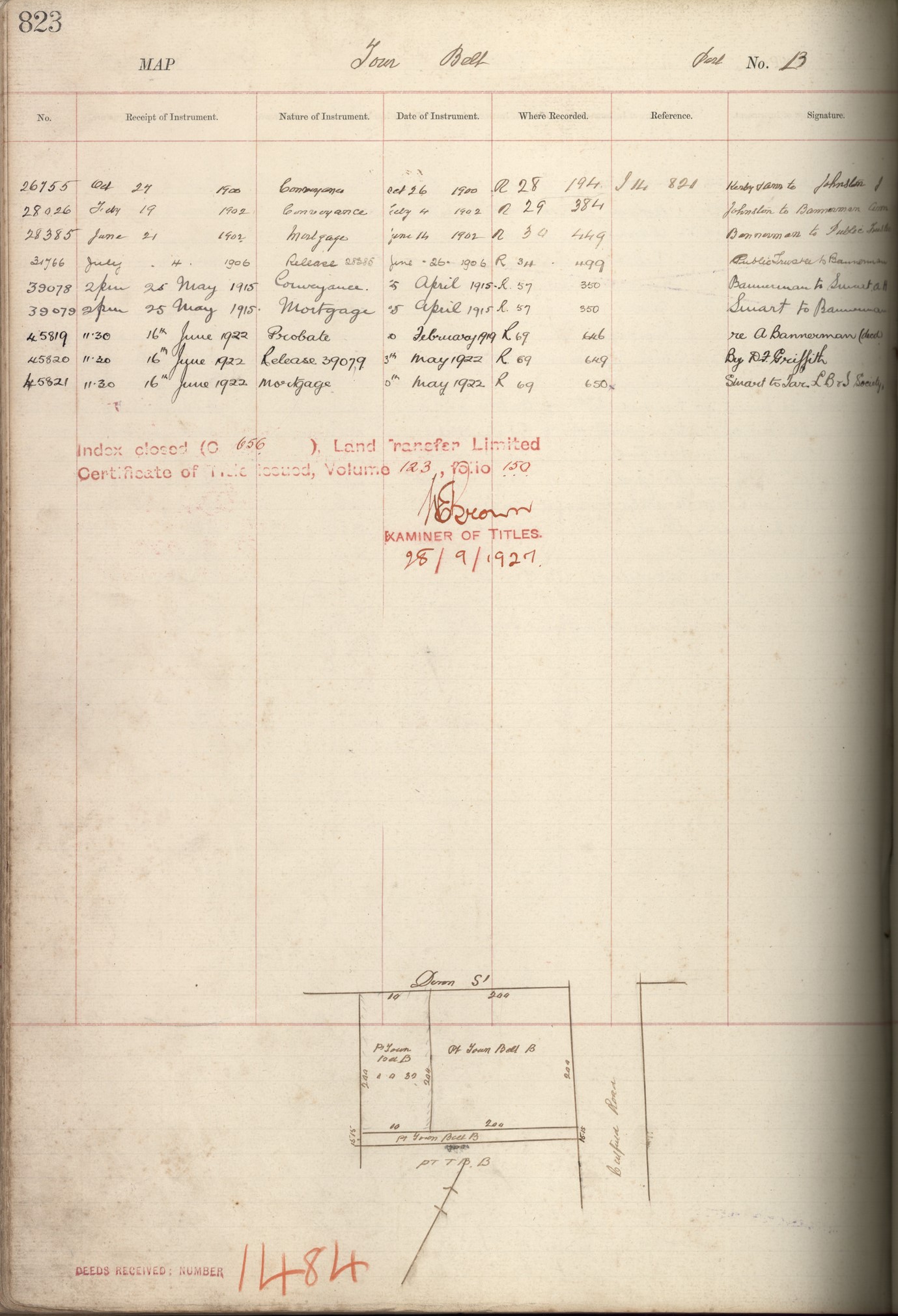 Town Belt (Part) B, Taranaki Land Deed Index I14 Pages 823. (Archives New Zealand)