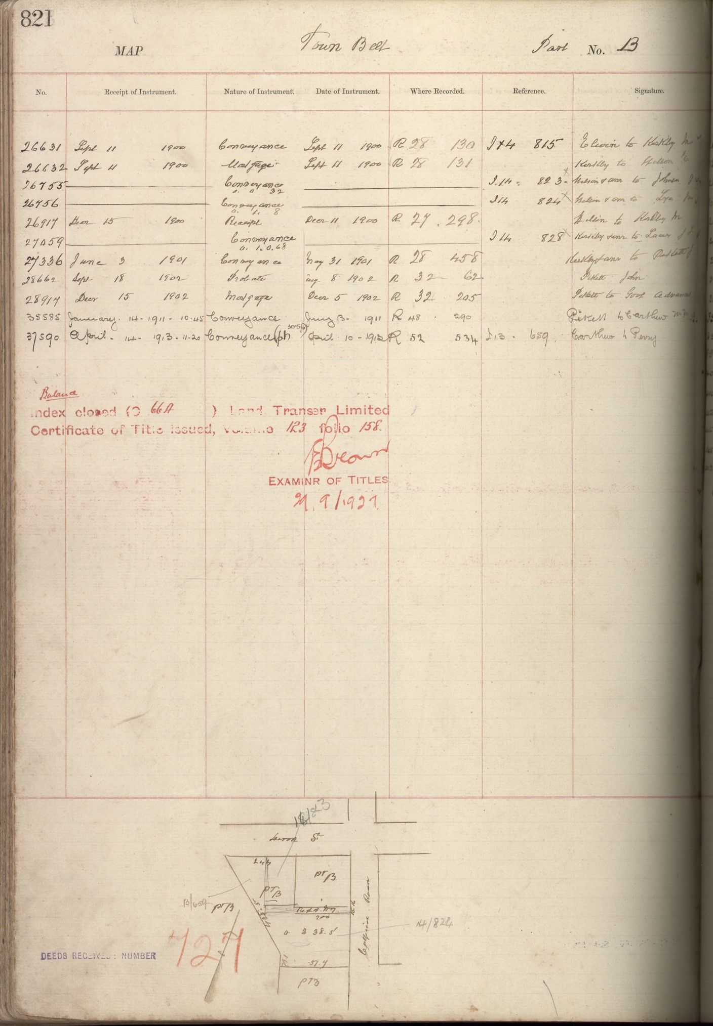 Town Belt (Part) B, Taranaki Land Deed Index I14 Pages 821. (Archives New Zealand)