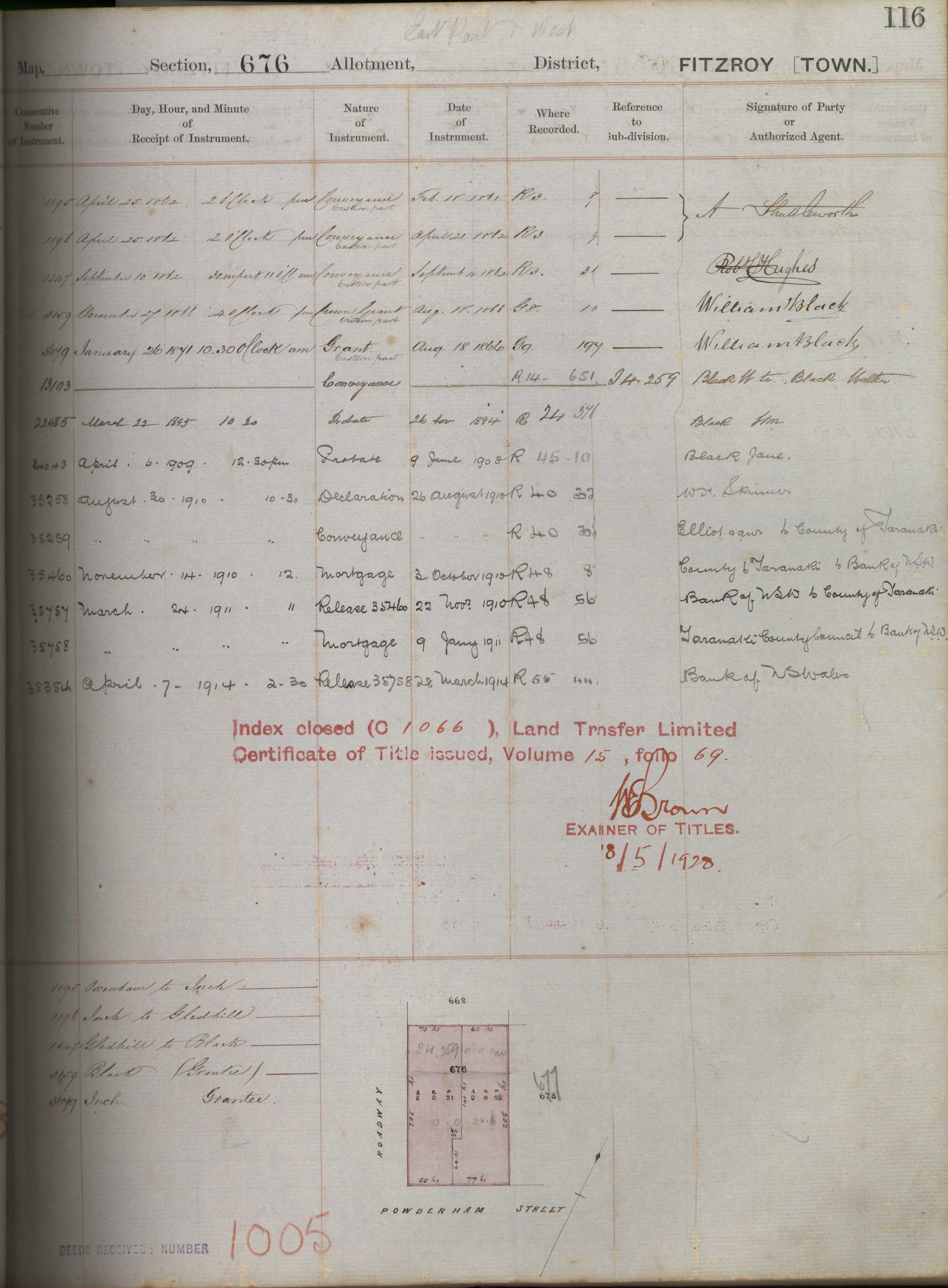 Town Section 676, Taranaki Land Deed Index I3 page 116. (Archives New Zealand)