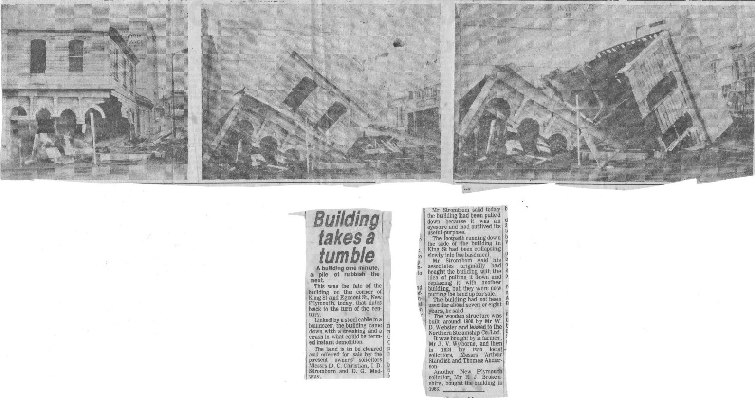 Building takes a tumble (Taranaki Herald 28 July 1979)