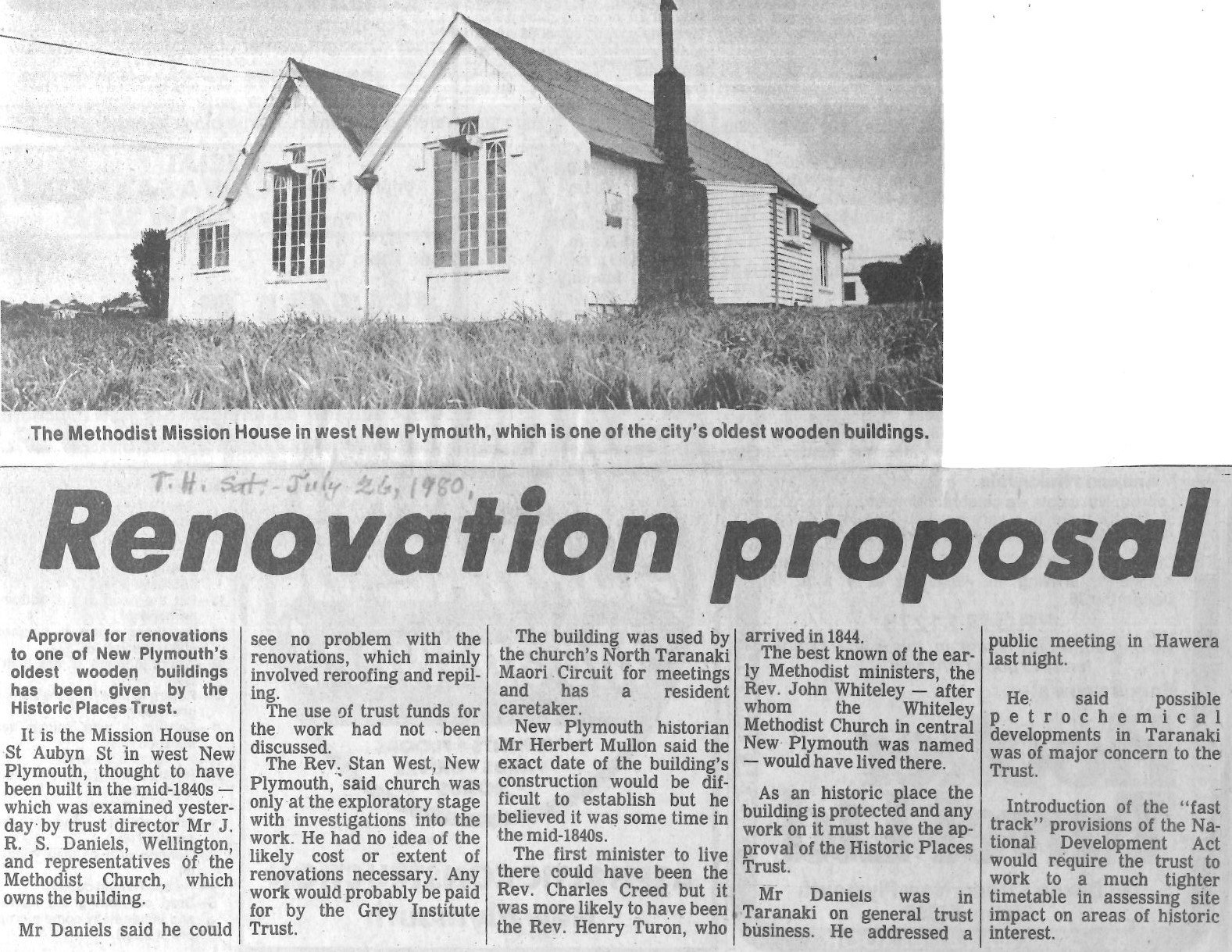 Renovation Proposal (Taranaki Herald 26 July 1980)