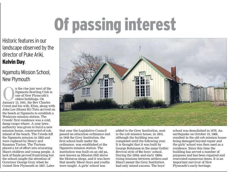 A Mission at Ngamotu, Vicki Price (Taranaki Daily News 1 January 2008)