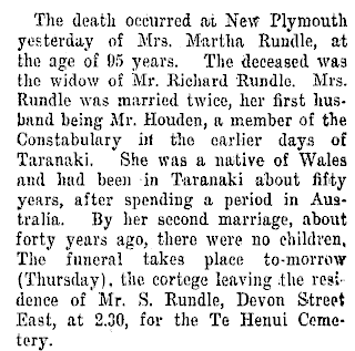 Martha Rundle Obituary (Taranaki Daily News 28 July 1920 p.4)