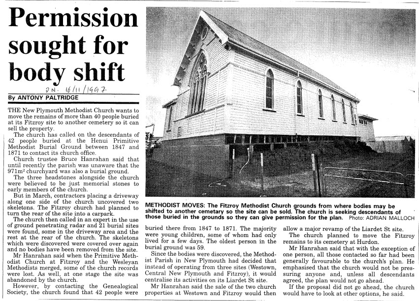 The first church on this site at 505 Devon Street East was erected in 1844 by Reverend Robert Ward, the first Primitive Methodist minister in New Zealand. It was demolished about 1900 due to its poor condition. In 1903 Methodist services resumed in the Fitzroy Hall and finally on 22 November the foundation stone for a new church was laid.