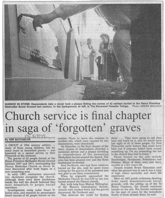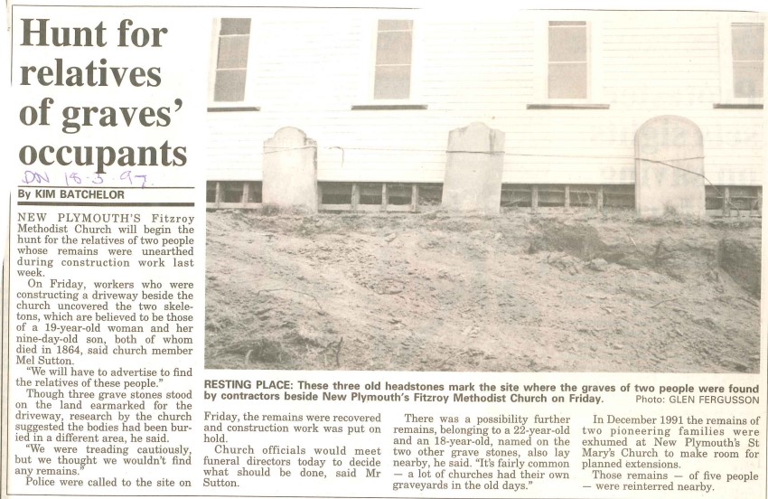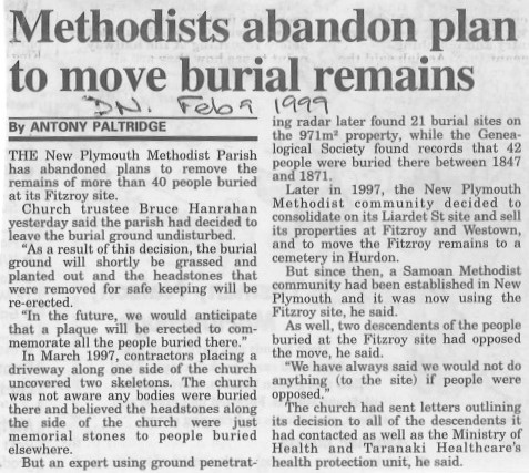 During construction work in 1997, two skeletons were uncovered next to the church, leading to the discovery of 21 burial sites. Plans to move the bodies were abandoned after complaints from relatives. On 3 July 1999 a memorial service was held and a remembrance plaque unveiled for the Methodists buried there.