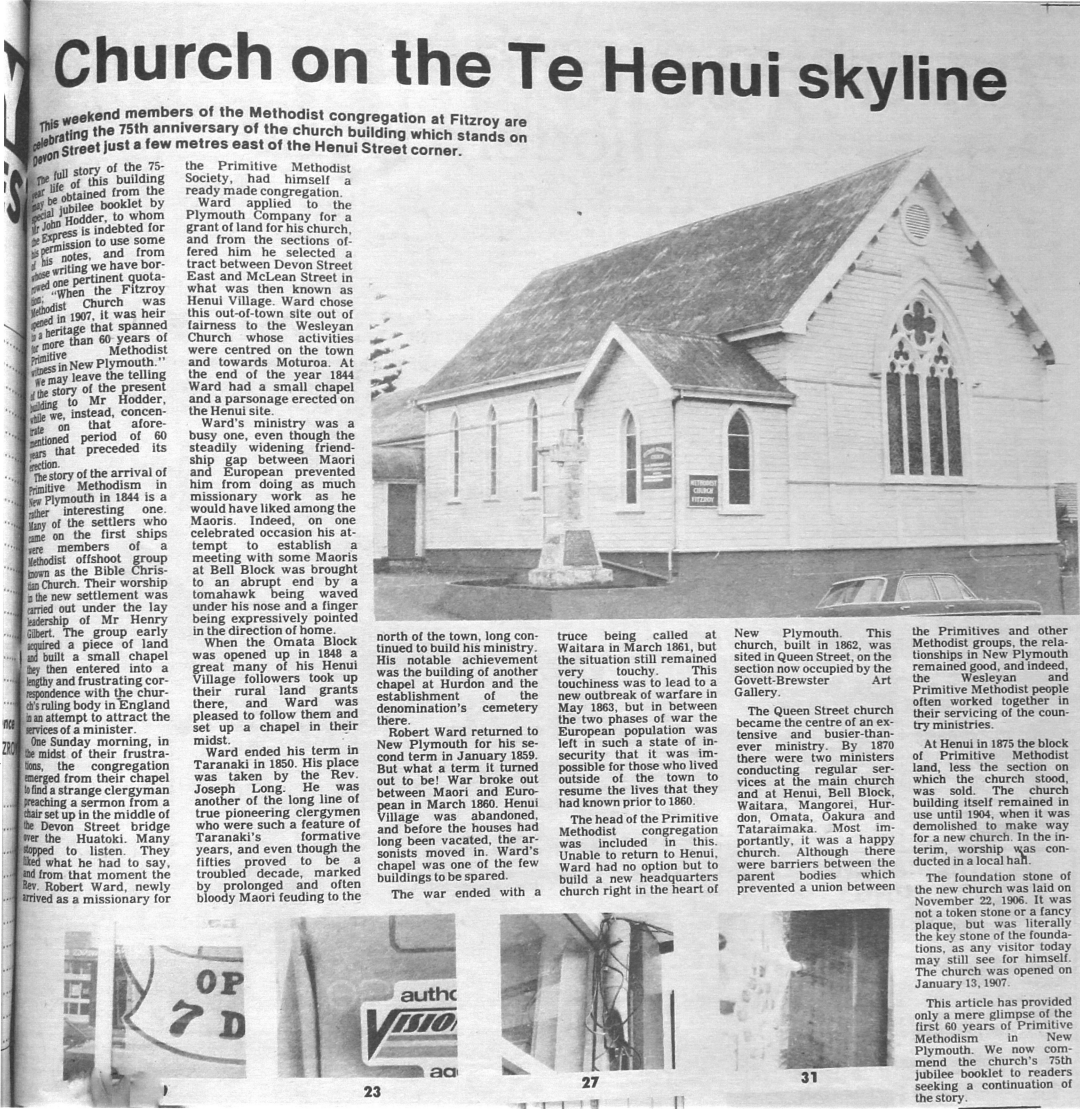 Church on the Te Hēnui skyline (Sunday Express 25 October 1981)