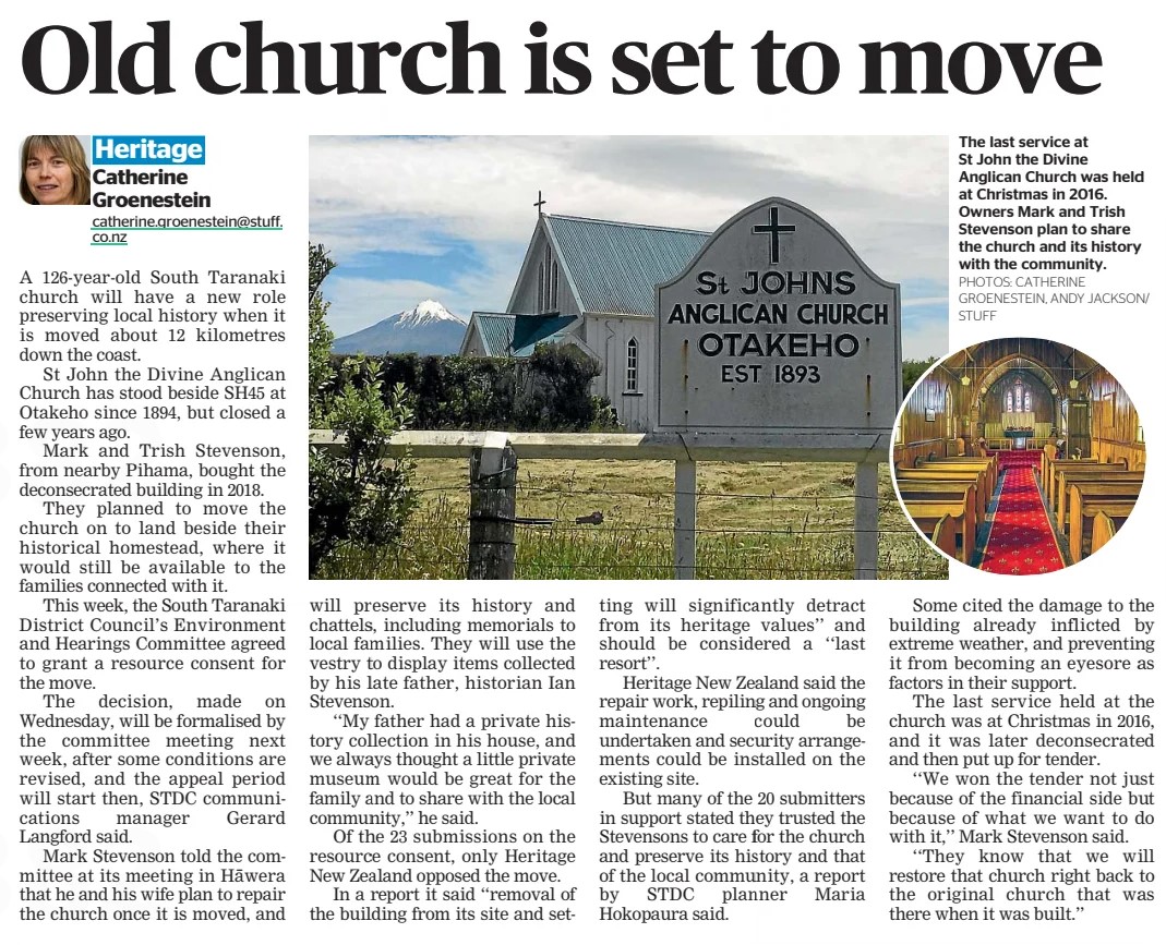 A new home for old church (Taranaki Daily News 8 May 2021)