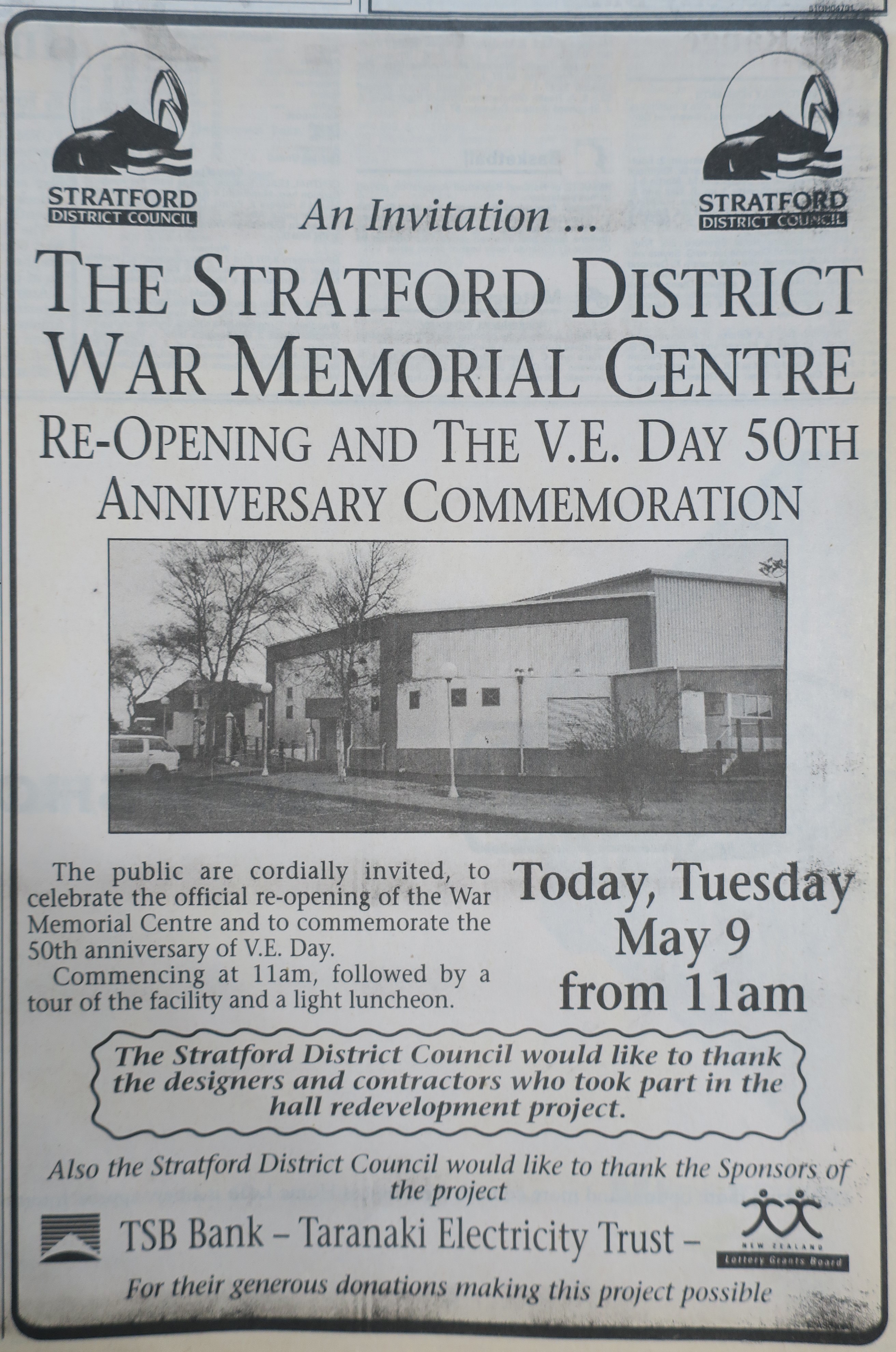 Stratford War Memorial Hall refurbished (Taranaki Daily News 9 May 1995)