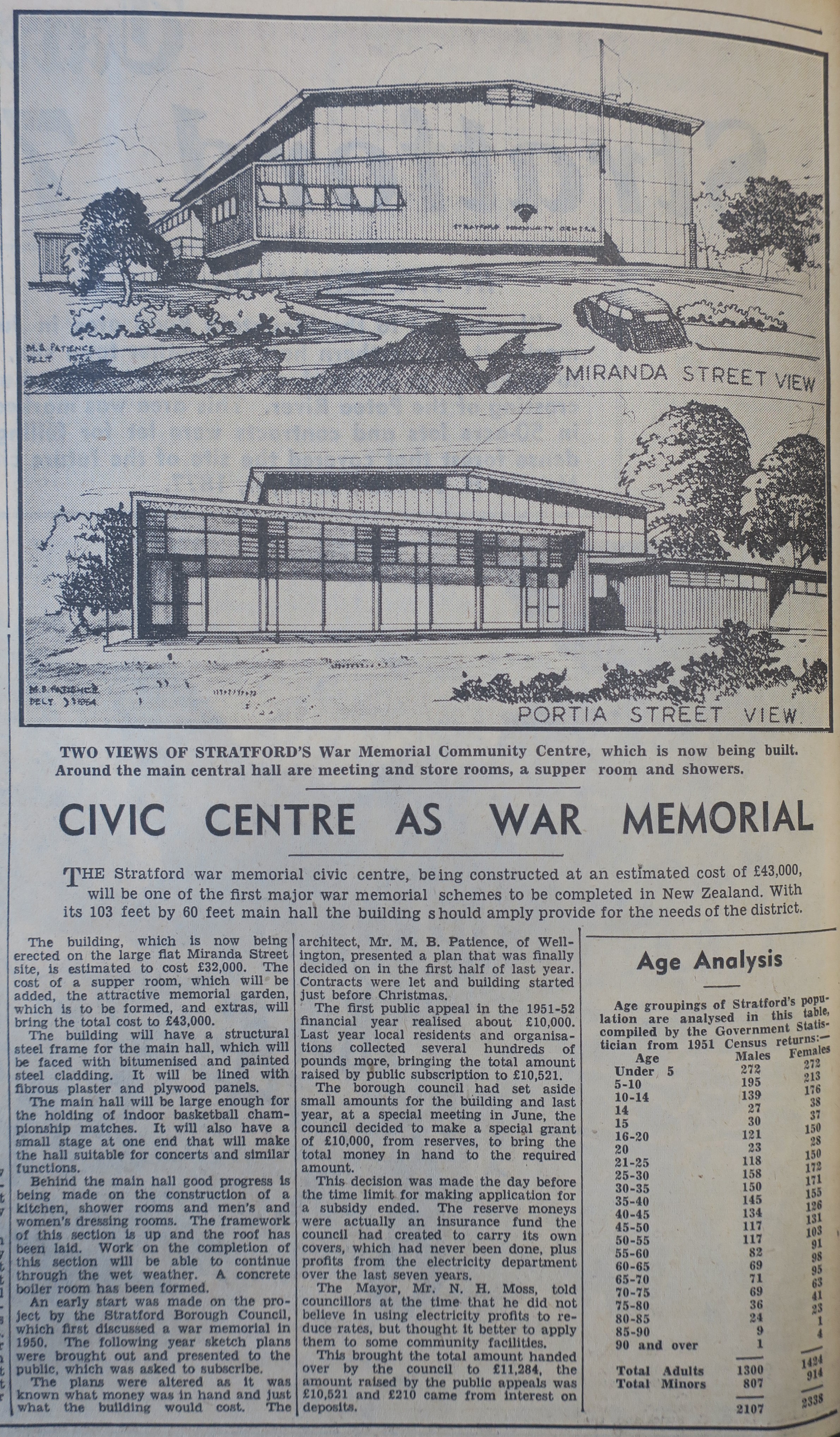 Stratford War Memorial Community Centre (Taranaki Herald 21 April 1955)