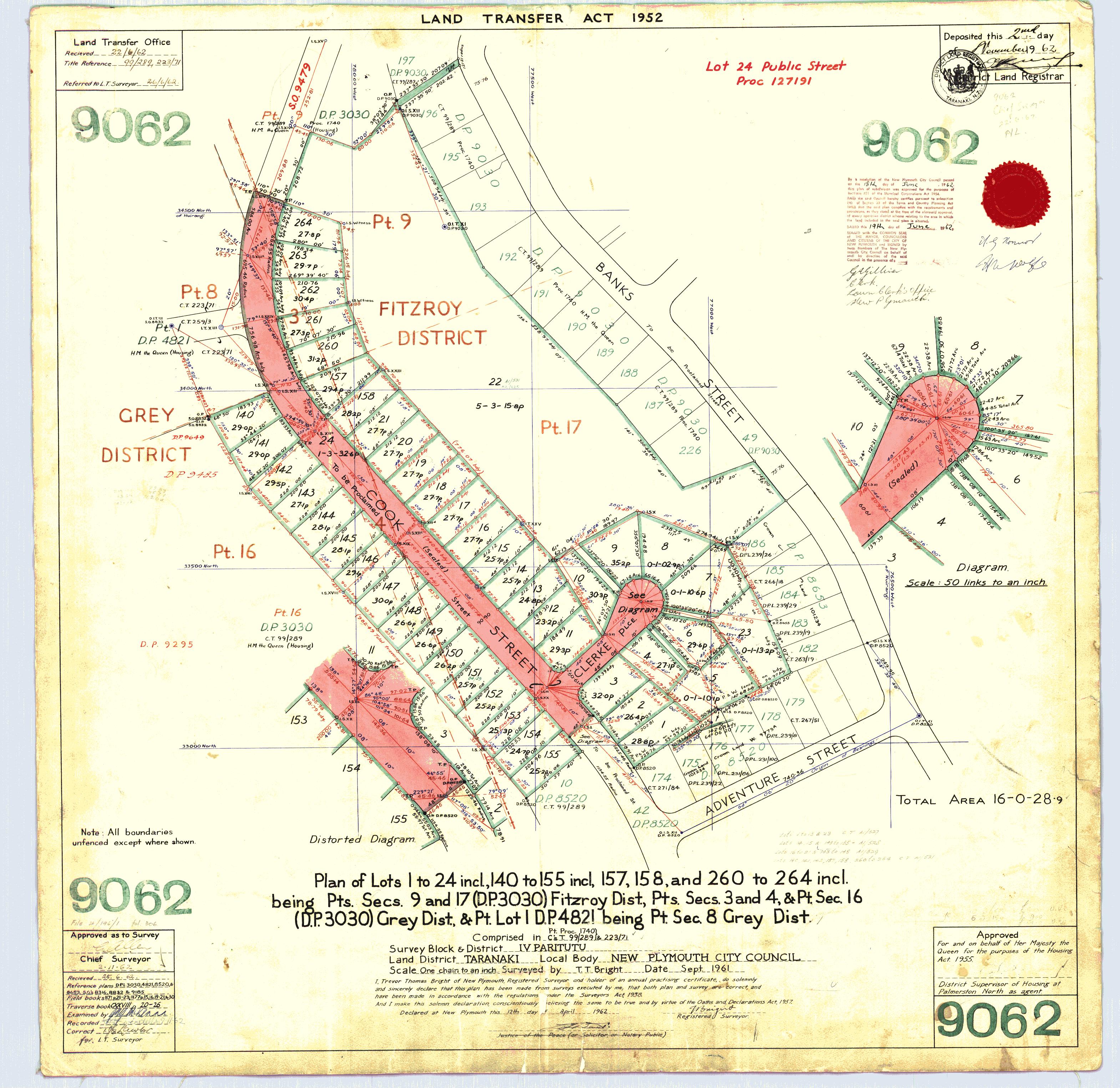 Taranaki DP9062 Clerke Place (1961) - ICS Pre 300,000 Cadastral Plan Index imaged by LINZ.