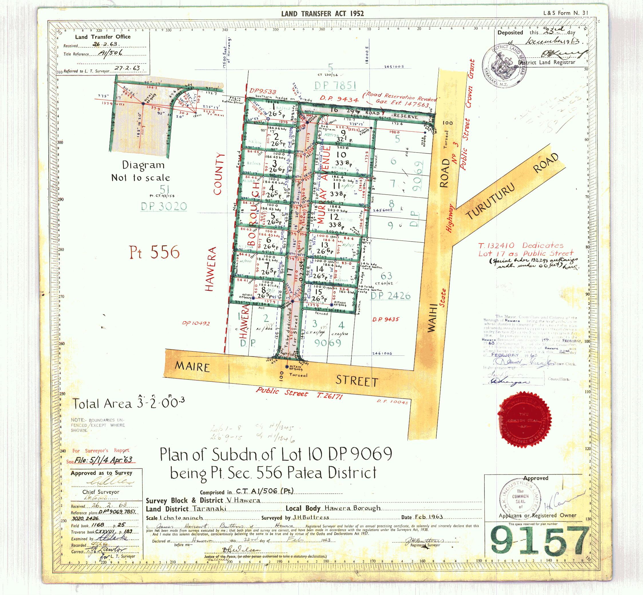 Taranaki DP9157 Sheet 1 (1963), ICS Pre 300,000 Cadastral Plan Index (Imaged by LINZ)