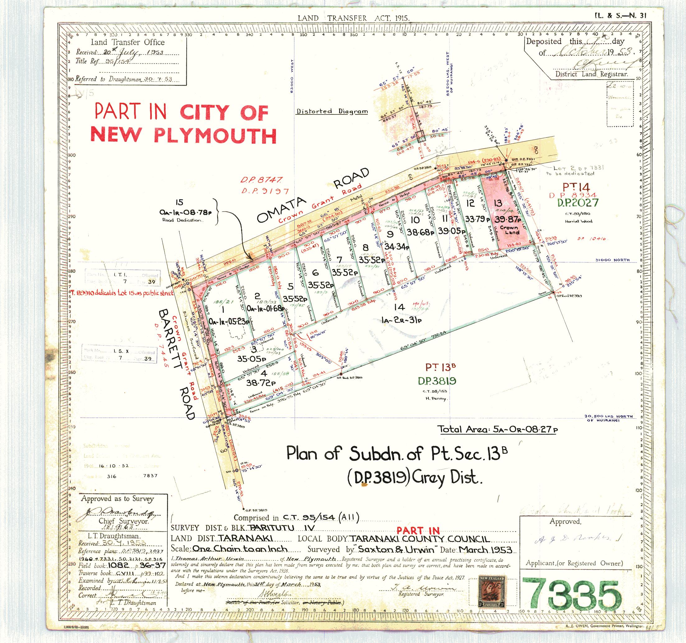 Taranaki DP7335 Sheet 1 (1953), ICS Pre 300,000 Cadastral Plan Index (Imaged by LINZ)
